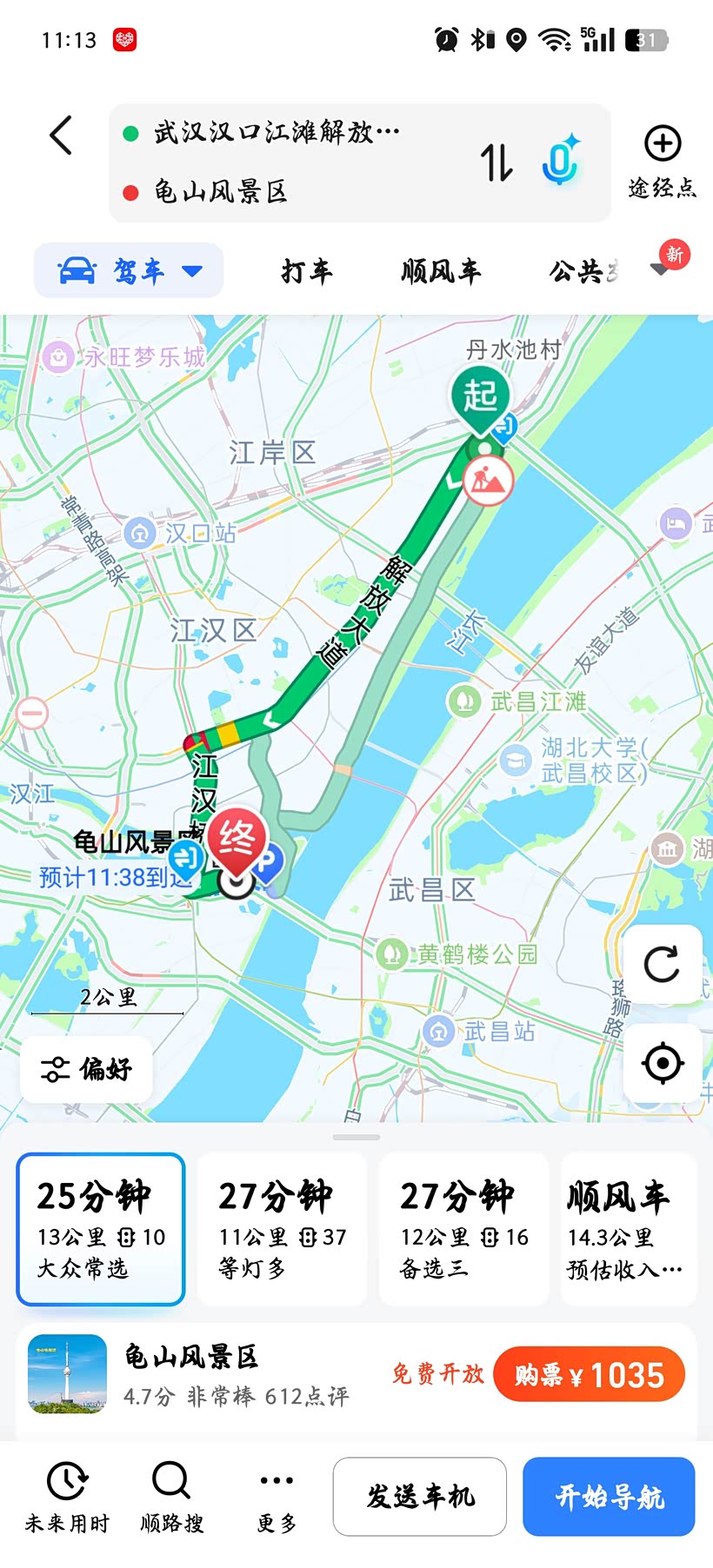 因为头一天在武汉当地旅馆进行住宿,然后驾驶奕炫GS直接从住宿处前往龟山景点,全程一共总路程为13公里,驾驶时间大概为半个多小时,选择的路线为市区道路。车内乘载人数为四人(三位大人一位小孩),这次出行奕炫GS的油耗为7.1升每百公里。