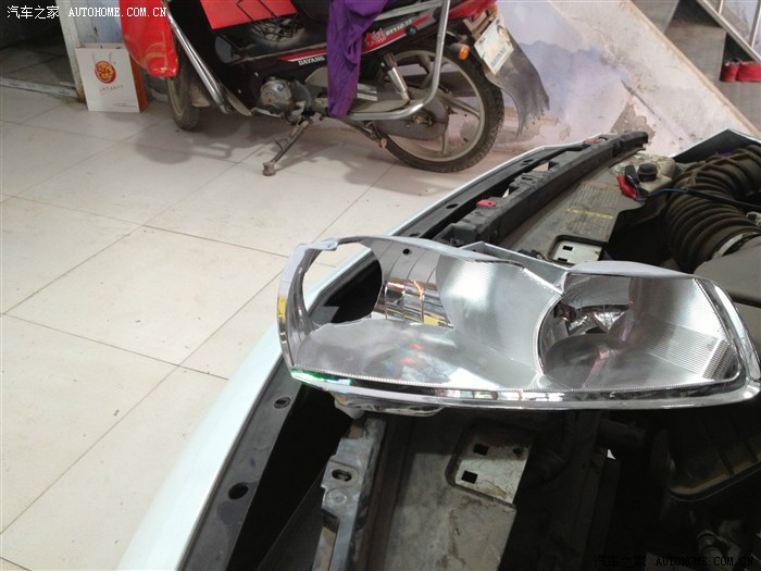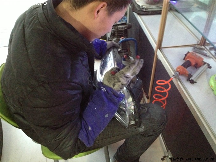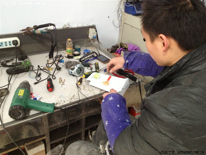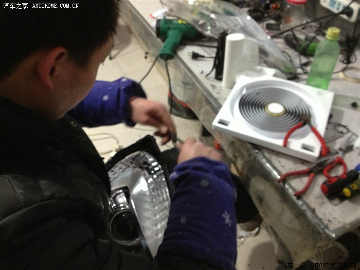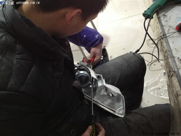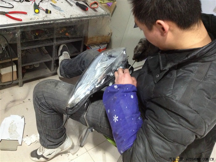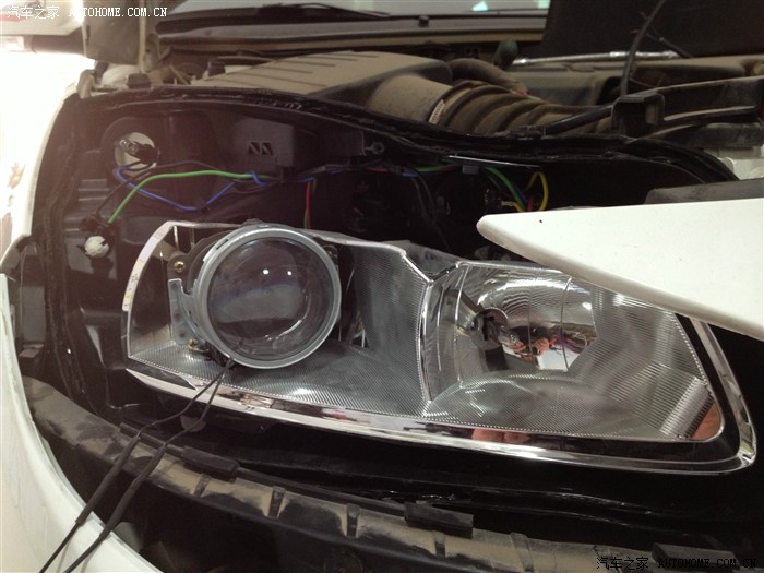 开了几次夜车,对白内障开始愈来愈不满,当对面有车靠近时,我可以说是完全看不清路面,哪怕面对的只是一辆普桑,这是我唯一对VV在实质使用当中遇到的不满,所以这个必须改。看到论坛里很多前辈在专业的改灯店改过,也有买了总成直接换掉的。我想寻求性价比,所以还是想选择前者,但改过之后我不知道是否真的选对了,请各位大侠前辈指点。我开始在百度浏览各种和改灯有关的***帖子,最后还选择了一家百度出来的本地一家专业改灯店,先通过QQ和老板聊了一下,简单聊了一下配置和价格,然后拿到网上和别人比对。其实我是只菜鸟,比对完毕还是一知半解,所以决定实地考察下。到店里通过当面沟通,首先觉得老板人挺实在,(直觉),推荐配置是用博世的透镜飞利浦氙气灯,安定用什么记不清了,报价3300.当时说第二天改的,但心里不是很有底,加上有事,便先搁置了。终于在这周一,早上雾特别大,能见度不足十米,开车头都晕,但恰巧路过改灯的那个市场,便连儿子还要上幼儿园也不顾了,拐进了改灯店,把老板从早上的睡梦中叫了起来,开始改灯。简单确认了下配置,Q5的透镜,飞利浦氙气灯和安定,没谈价格。