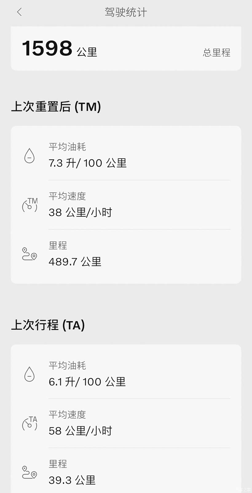 油耗这方面,很惊喜!!!目前1600公里左右里程,最低油耗5.9L/百公里,平均7.3L/百公里