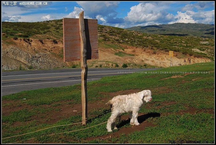 ~~~~这里有个路边‘观景台’可以驻车小歇~~~我见边上的石栏上拴着一只纯白的羊羔~~~没多想就蹲下来举起了手中的相机~~~瞬时从傍边不远处的巨石后面冲出一个拖着鼻涕的哈族幼童,也就六七岁的样子的模样~~~边跑边大喊‘给钱!给钱!给钱~~’~~原来这是个‘局’啊呵呵~~想起了前面买鲜奶时的同样场景~~~~我问他‘给一块钱行吗?’~~~这孩子怒目圆睁‘不行不行!五块钱!’~~~~不能怪他,他们也得在这个日渐打开的小社会里成长和进步哦~~~