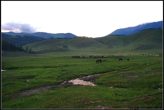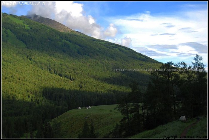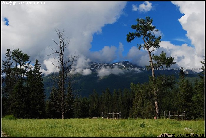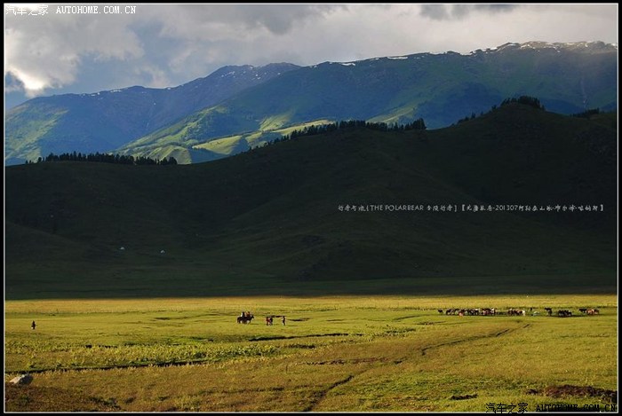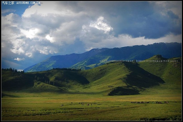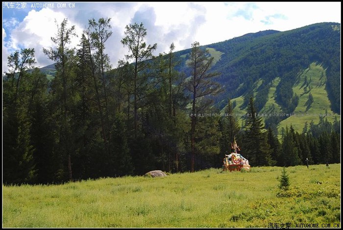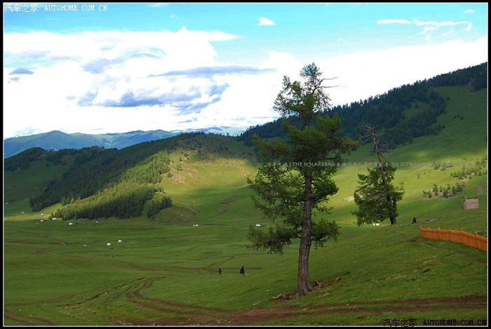 ~~~此地水丰草美空气清新~~~牧人跃马扬鞭徜徉其中~~~山峦草甸中不时地出现几棵年数久远的苍劲古木~~~~