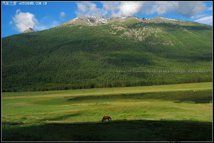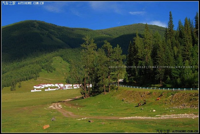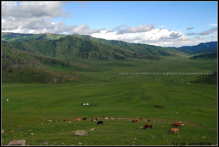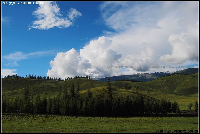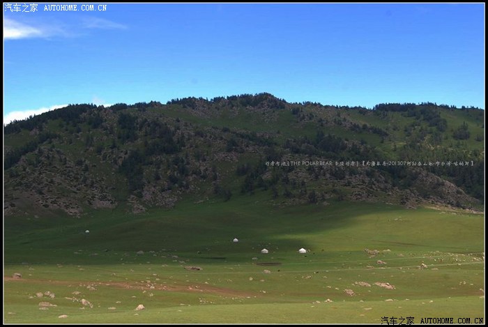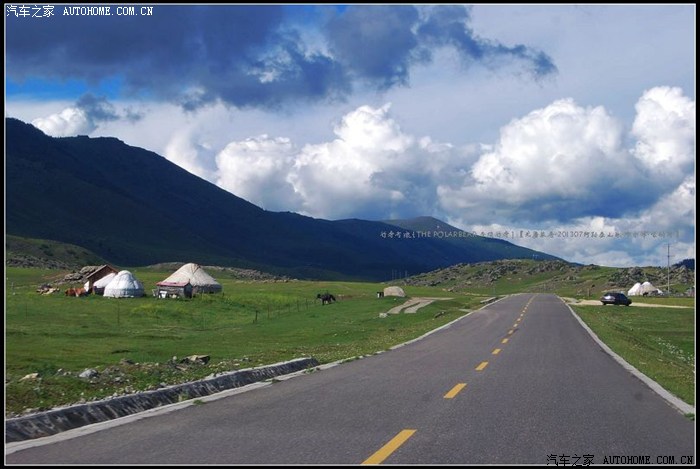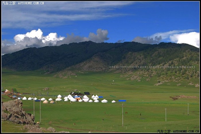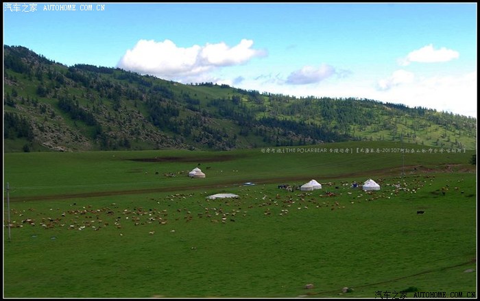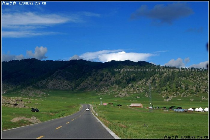 ~~~~从布尔津往喀纳斯方向的S232省道~~~~平坦的盘山柏油路很容易丢失眼前稍纵即逝的风景。在只顾了看白云、蓝天、牛羊和毡房时,忽然被已经掠过的那片开阔的草原召唤着回转了车头。