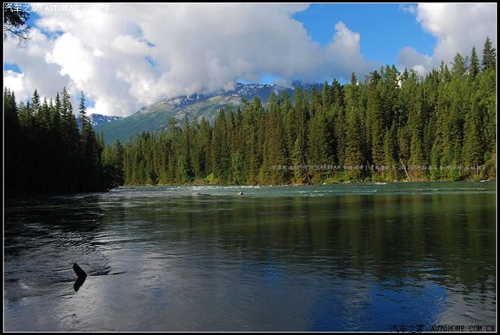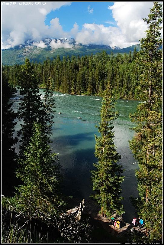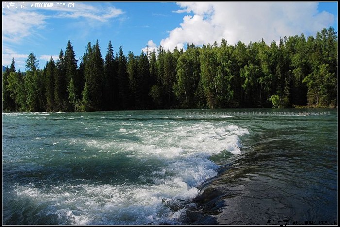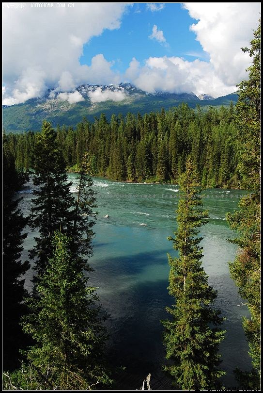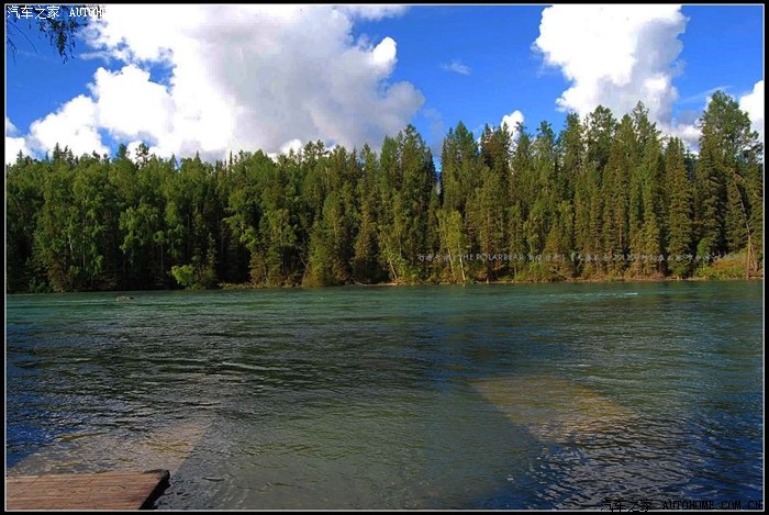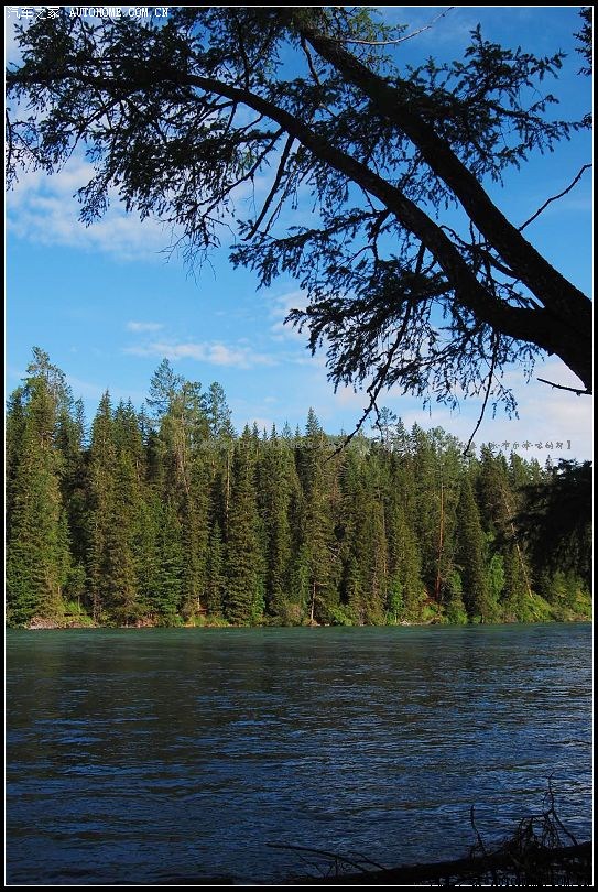 ~~~~由东往西滔滔奔涌的喀纳斯河~~~清澈雄浑~且冰凉彻骨~~~河水两岸景色秀丽~~~~~