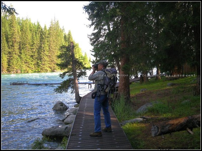 ~~~LD镜头里的‘行者’~~~在专心给喀纳斯沿河风光做着录影记录~~~~