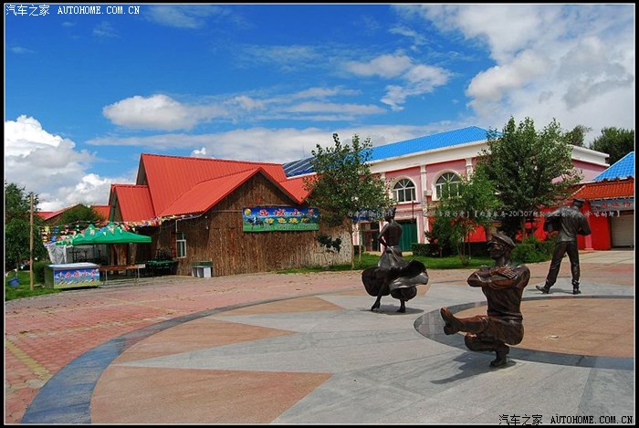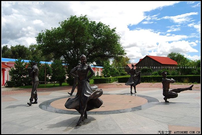 ~~~整洁秀丽的布尔津城~~~处处洋溢着浓烈的俄罗斯情愫~~~~随处可以从百叶窗中飘出欢快的手风琴乐曲~~~街头巷尾的也可见这样的俄式民族舞雕塑~~蓝天白云下的多彩建筑也是一水的俄国风情~~~小城不大,从县城的这一头走到那一头也花不了多长的时间,但很有特色。街道两旁的楼房一律红色尖顶,欧式风格,一派俄罗斯风情。小城街道不宽,有云杉一条街,白桦一条街,红柳一条街,白蜡一条街,在每棵树中间,还种有丁香、珍珠梅、榆叶梅等,每条街道红、黄、绿、紫,各有各的色调......怪不得布尔津被很多文人墨客称为童话王国的小城呢。~~~