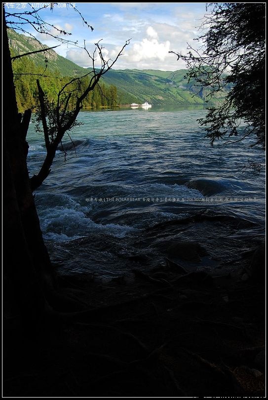 ~~~~喀纳斯河之‘卧龙湾’段~~~水流湍急,多漩涡,水石相激,浪花四溅,水声震天;河床呈槽谷形,湖口到鸭泽湖之间的河段,河面比较窄,一般在50米左右;河床比降大、水急浪大,银流飞泄,气势磅礴;鸭泽湖到卧龙湾河段,河面宽阔,地势平坦,一般宽80—100米,内多小心滩,水流缓慢,河面平静。河床两岸云杉参天、层松苍翠,有野生动植物如棕熊、狼、马鹿在此出没;河滩上绿草如茵,山花烂漫、牛羊成群,绿水青山,水天相接,是漂流的最佳河段。 该河段位于禾木喀纳斯蒙古族乡境内,南距布尔津县城143公里,平均海拔1300米。