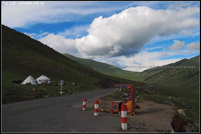 ~~~~~我们驱车继续穿行在阿贡盖提草原~~~S232沿线有很多夏季转场的哈萨克牧民临时搭建的毡房~~~现在的牧民真好~~~~虽以游牧为主~~~但蓬勃的旅游业日渐兴盛~~~他们也可以向南来北往的过境游客兜售一些牛羊肉制品-鲜奶制品和山上的野生菌菇类~~~他们的子女也在同过往游客的交流接触中开阔了眼界~~~~