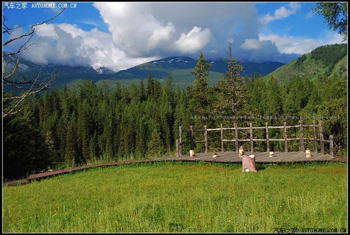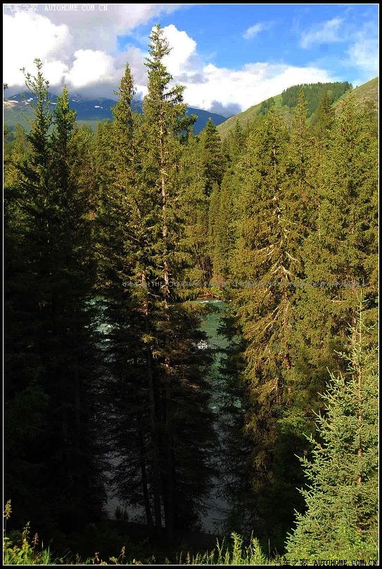 ~~~~贾登峪国家森林公园~~~~位于新疆阿勒泰地区布尔津县境内,公园主要由阿尔泰山主脉及向南延伸的曼迪万沙刚沙拉两大支脉构成,地势东北向西南倾斜,山势起伏较大,整个山势随着山脉向外延伸,海拔高度逐步降低,从山麓至山顶,表现逐级增高的梯形地形,平均海拔1600米,其中海拔1500米以上的中山带,地势开阔,其中森林茂密,草场辽阔,群山逶迤,蓝天、白云、森林、草原相互交融,构成了新疆典型的自然风光特色。海拔1500米以下的低山河谷地带,地形狭窄陡峭,陡崖、深谷和险滩、峡谷、河流、绿树交织出一条条风景如画的长廊~~~~