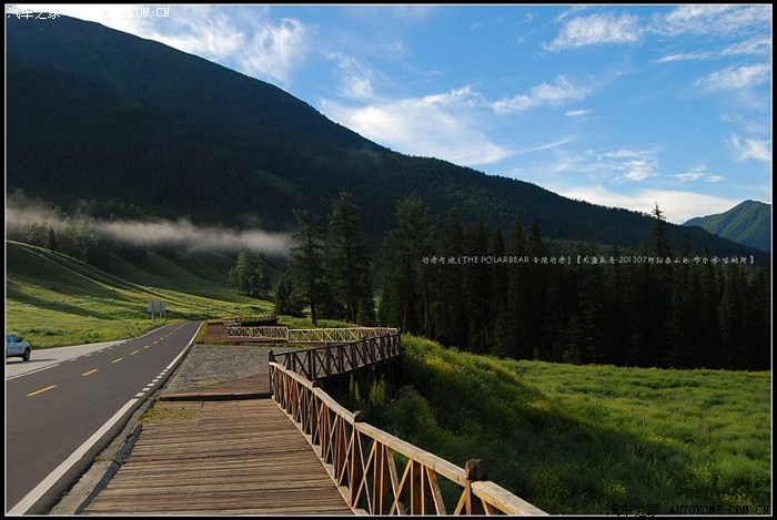 ~~~2013年火热的七月天~~我和LD带上旅行装备一路驱车北上~~美丽的布尔津是LD出生的地方~~她的整个童年阶段都是在温婉秀丽的厄尔齐滋河畔度过的~~为了寻找LD依稀的童年记忆~~我们经由G30切入G217-S232省道奔过来~~由于前阵新疆时局的因素~~路上游人车辆都极少~~驾车很通顺心境也更爽亮~~清晨中的薄雾带来很好看的景致~~~~