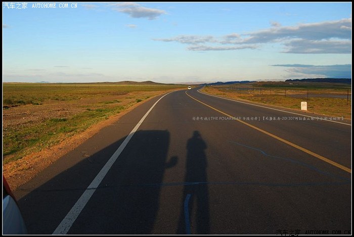 ~~~~清晨七点我们就早早吃了‘蘑菇鸡蛋肉丝小煮面’从‘和什托洛盖’镇启程出发了~~一夜的大风过后天气很好~~~我和‘肥仔逸’的影子~~被暖暖的阳光投射在G217国道上~~~早早的出行我们已经习惯了~~~车少路好走有不少的路途景观可以‘捡拾’哦~~~~~马上进入‘阿吾斯奇大草原’纵深腹地~~~