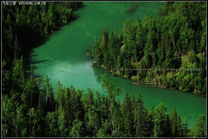 ~~~~风光旖旎的喀纳斯湖~~从这里开始形成较窄的河道~~~一路向西奔腾出境~~~注入俄国境内的縡桑湖~~~~