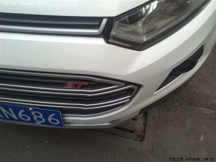 首先是外观,前脸加银色保险杠装饰,灯媚贴这些都不说了,重点是嘿嘿大嘴上红色的ST标志,在加上雾灯下面两侧的红色防擦条,综合起来是不是很运动啊!