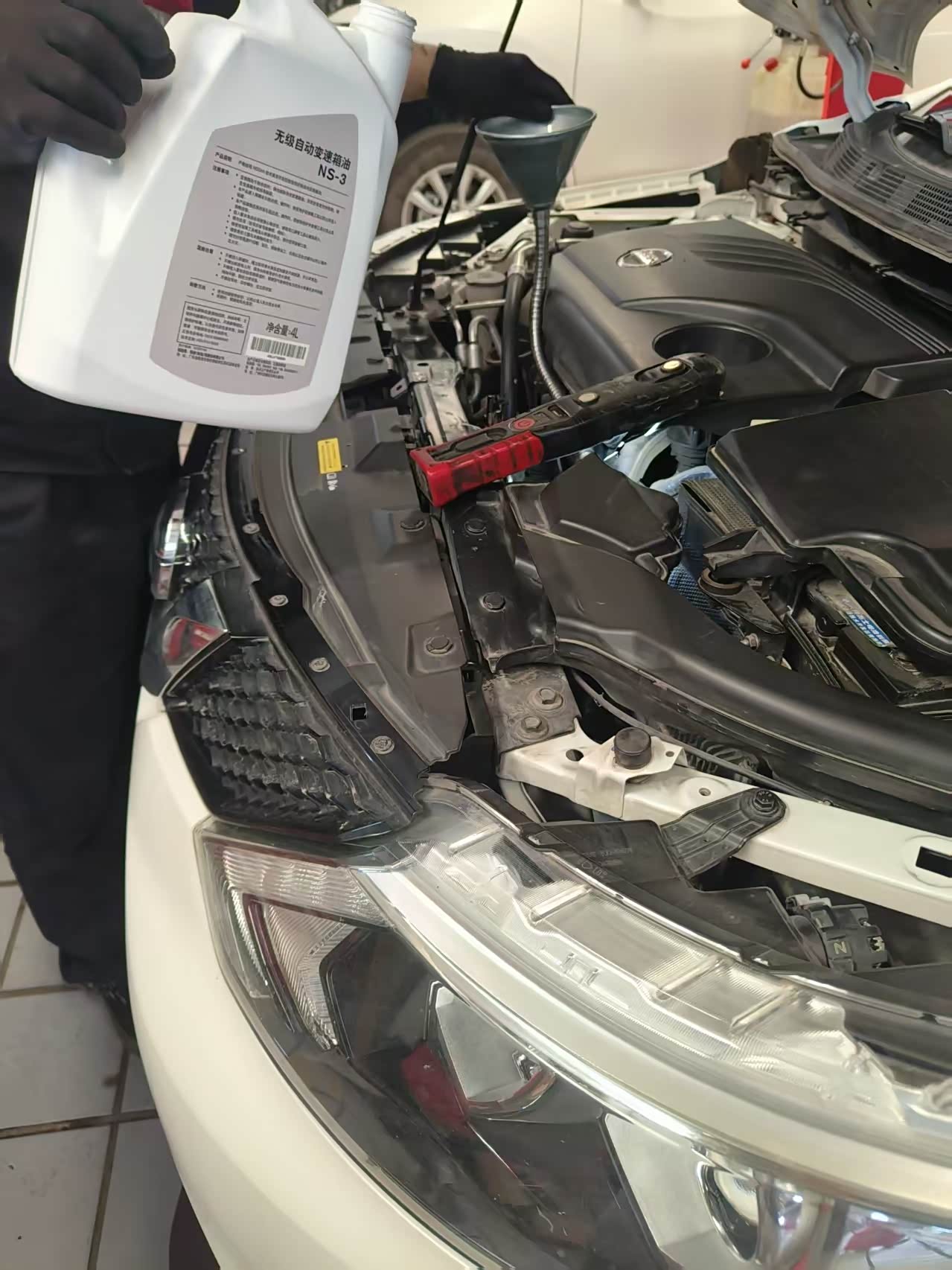 设计缺陷#电瓶槽积水会结冰挤压壳体,我用注射器抽积水时发现,逍客的电池托盘排水孔比竞品小30%,已用热熔胶扩孔改造。