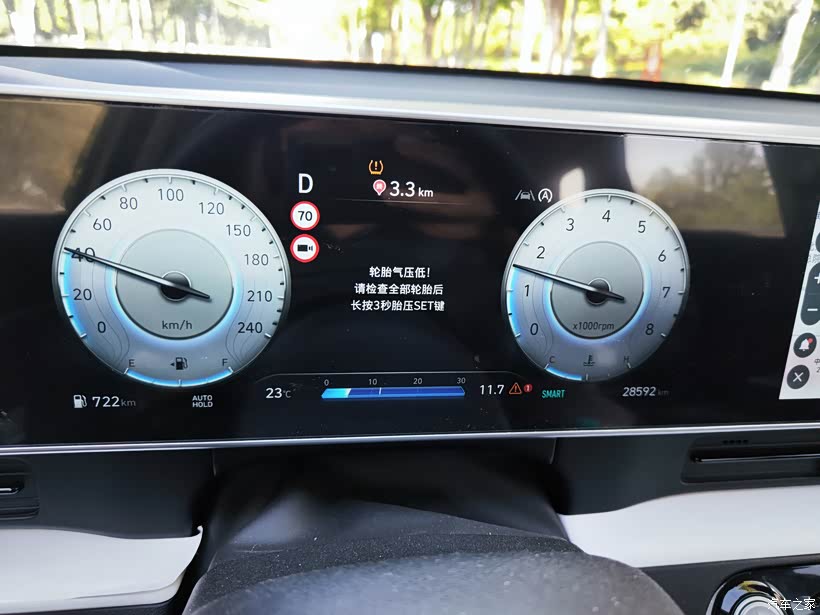 我的车是23款ix35沐飒LUX尊贵版,在胎压监测这个功能上,全系采用的是胎压异常报警的版本,并不支持正常情况读取具体胎压数值,对于平时从来不关注这个参数的车主来说确实无所谓,但对我一个酷爱自驾游,对安全格外重视的老司机来说,这个版本让人心里十分不爽。
