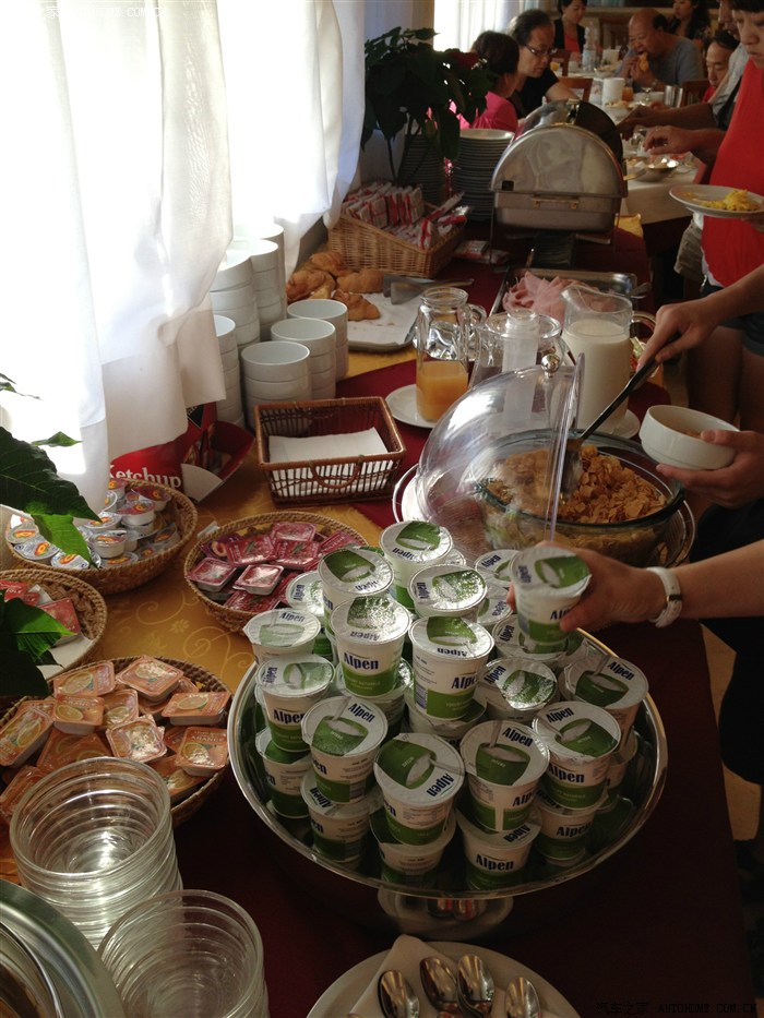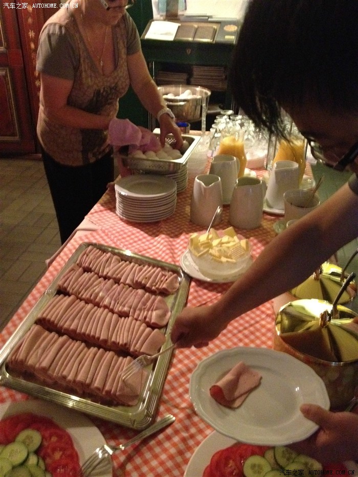 我们的早饭!基本是冷餐!佩服老外,大清早起来,冰牛奶泡麦片加凉面包和肉肠,就直接吃了!!