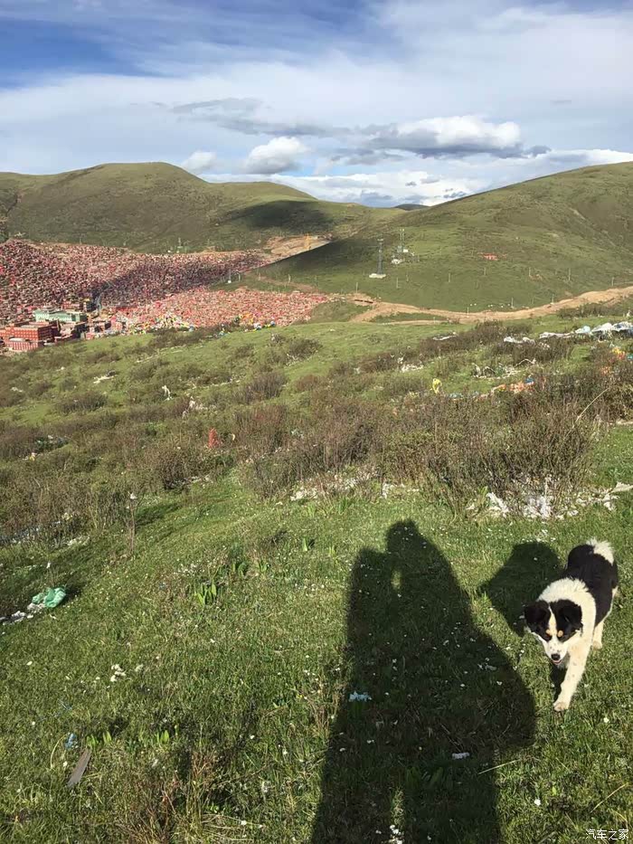 看完天葬翻山回佛学院,我们是唯一看完全程最后离开的,所以山路上只有我们两个,半路一只小花狗跟上来友好的摇尾巴舔手指,以为是饿了,就给它吃的,它居然不吃,后来倒了点水给它,才发现是渴了,小家伙一口气喝了小半瓶水,之后就一直跟着我们走回到佛学院,到了人多的地方就跑不见了,不知道溜到哪儿玩去了。