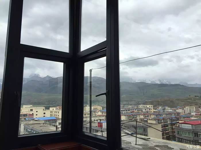 甘孜县城不远处就是雪山,从顶楼窗外就能看到。