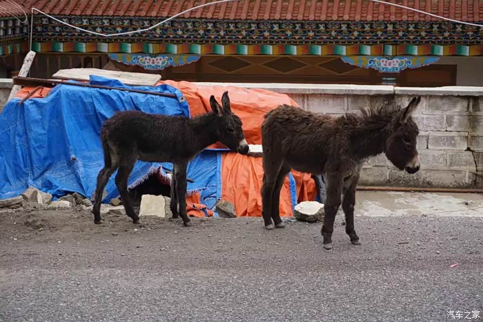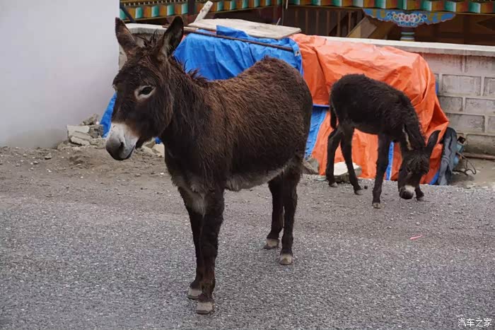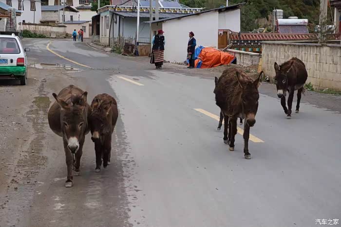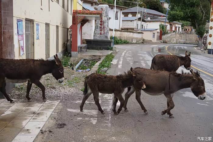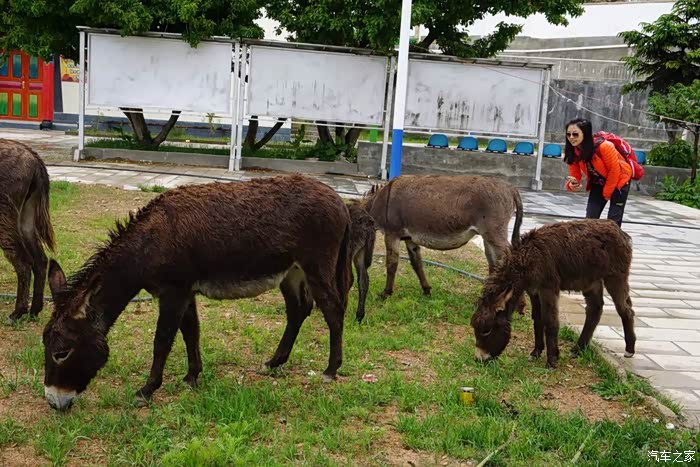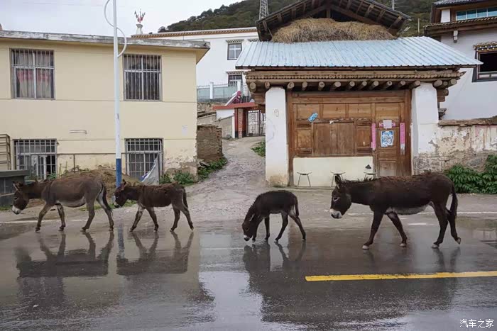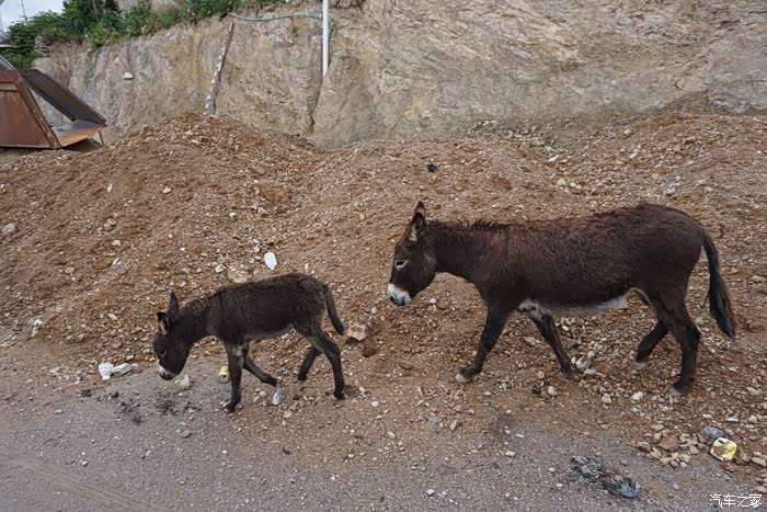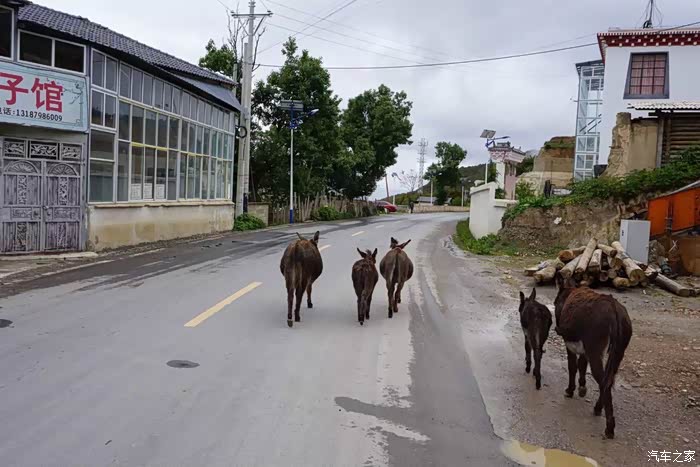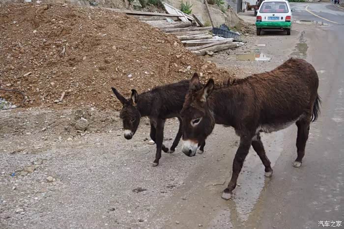 遇到萌驴一家出来散步,在马路上随便溜达,人畜相处的很和谐。