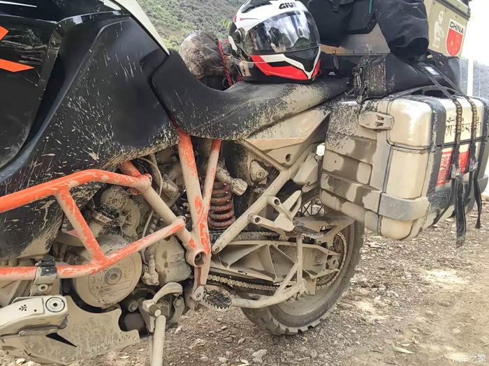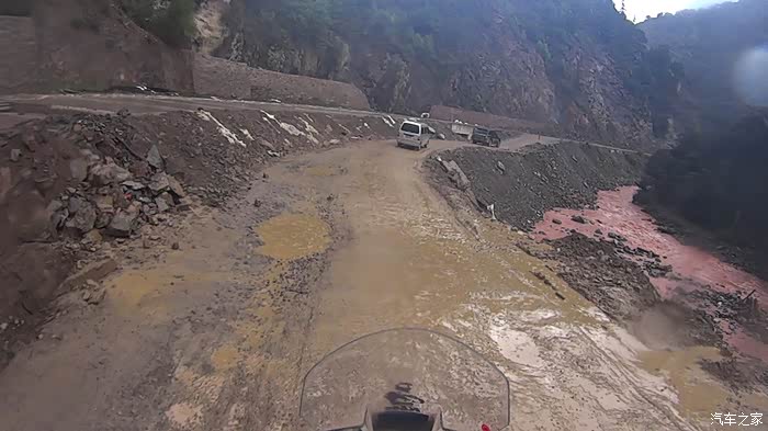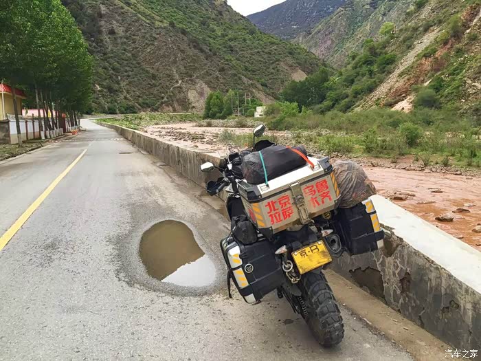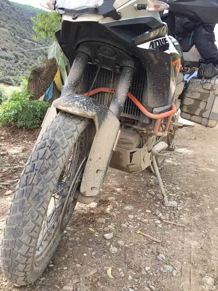 出了巴塘30多公里就是金沙江大桥,桥上过了西藏界,然后开始进入西藏特有的村村镇镇检查站的路途,换过的油封因为内径偏大,还是有点渗机油,还好渗出很缓慢,估计可以坚持到拉萨。318国道距离芒康40公里开始的路段损毁严重,到处在施工维修,其中有20多公里是单边放行。烂路连连,又赶上下雨,路变成了水坑+烂泥,当然跟之前跑过的烂路比不算新鲜,切换成越野模式加高转数一段段趟过去。