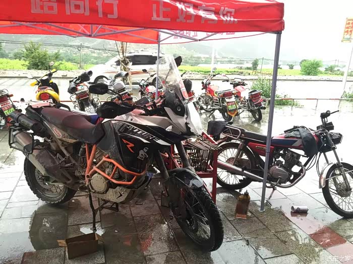 6月13日(一),D21天,巴塘。 大野驴满血复活今天是主要任务就是搞定大野驴的油封。因为尺寸比较特殊,这里找不到同样型号的油封,于是三方求援:巴塘力之星摩托店谢老板帮我们去找汽车用的油封看有没有尺寸类似的,我跟北京和成都4S店两边求助。北京和成都都没有这款油封的现货,于是北京店的付鸿迪和大金程帮我向奥地利预定,成都店的“十三”兄弟很给力,帮我去市场上买了两个同样尺寸的油封准备快递给我。这边谢老板更有收获,找到了一个类似尺寸的油封,外径相同,内径偏大一点,谢老板妙手回春,用内弹簧把油封内径绷紧装上去,试了下居然没发现渗油,大野驴又可以蹦哒了,明天可以继续上路,太开心...
