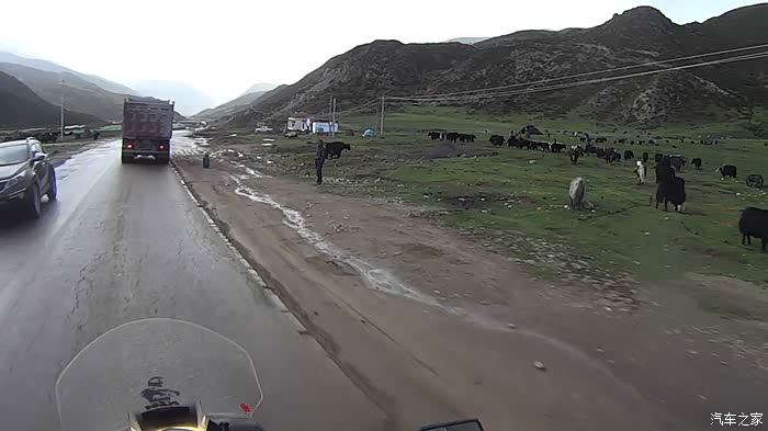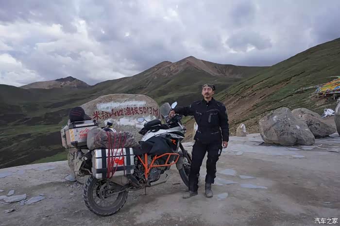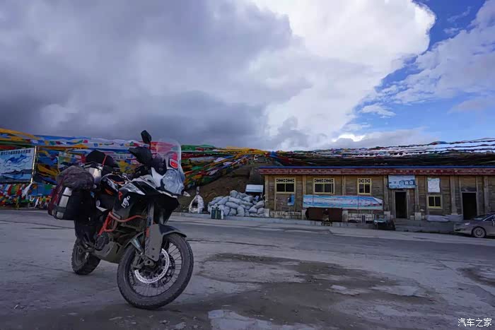 攀上米拉山口的时候遇到大风,风大到连做生意的藏民都被吹跑了,整个山头上没几个过客停下来。我们因为有摩托服防风,可以安心拍照,路过的一辆车上下来几个衣着单薄的游客,冻得瑟瑟发抖,催我们快挪开摩托让他们在有海拔标注的石头那儿拍张照,我们看着他们狼狈又没礼貌的样子,真是哭笑不得,明明我们在路上风吹雨淋泥水满身,比他们艰苦,现在倒显得他们很可怜的样子。