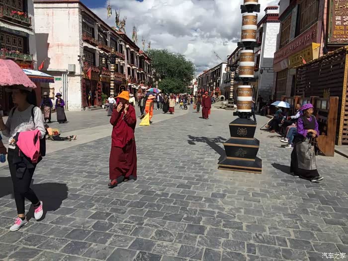 6月24日(五),D32天,拉萨。 拉萨市区,睡觉洗驴逛街聚会。拉萨第一天,必须是休息。大补一觉,睡到自然醒,下午牵出大野驴去好好洗了个澡,洗掉5000多公里的风尘。然后骑着干干净净的大野驴去布达拉宫广场前面晒晒干。在八廓街西侧的娜玛瑟德吃个下午茶,虽然是尼泊尔和藏式混合餐,但是比纯藏餐容易接受,让小妞先适应一下。熙熙攘攘的八廓街,那些虔诚的信徒在大昭寺前五体投地净化着生命。八廓街里面大多数店面都是做游客生意卖纪念品和工艺品的,靠北侧有一片区域是当地人自己买东西和交易老货的地方,叫冲赛康,很好找,有个很大的菜市场,周围一片看起来朴素一些的店面就是了。小妞在那里买到了...
