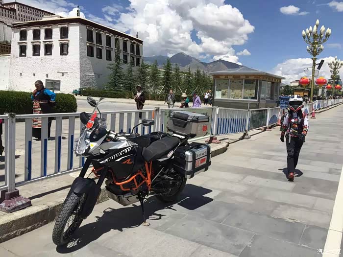 拉萨第一天,必须是休息。大补一觉,睡到自然醒,下午牵出大野驴去好好洗了个澡,洗掉5000多公里的风尘。然后骑着干干净净的大野驴去布达拉宫广场前面晒晒干。