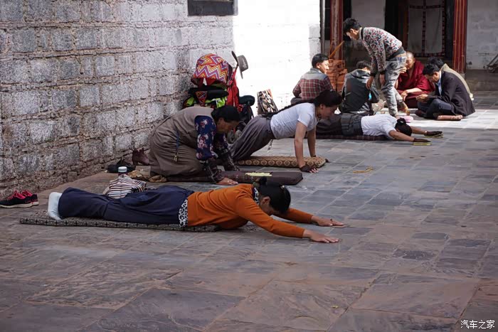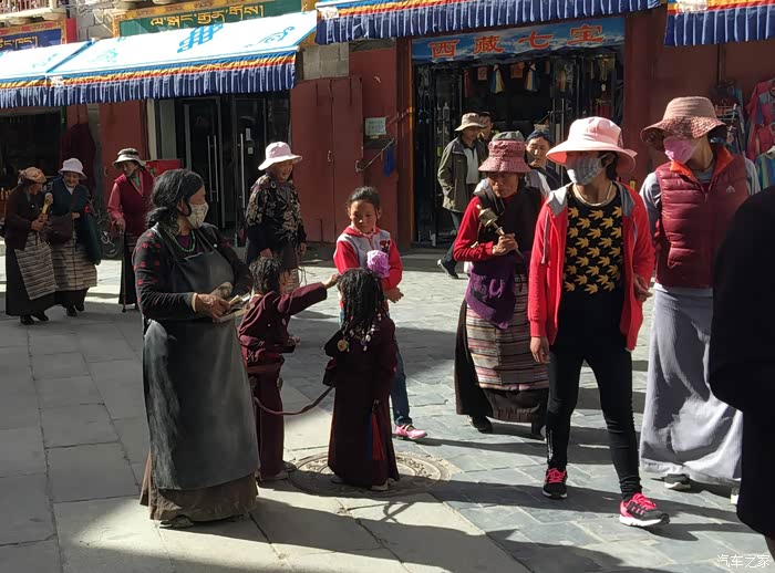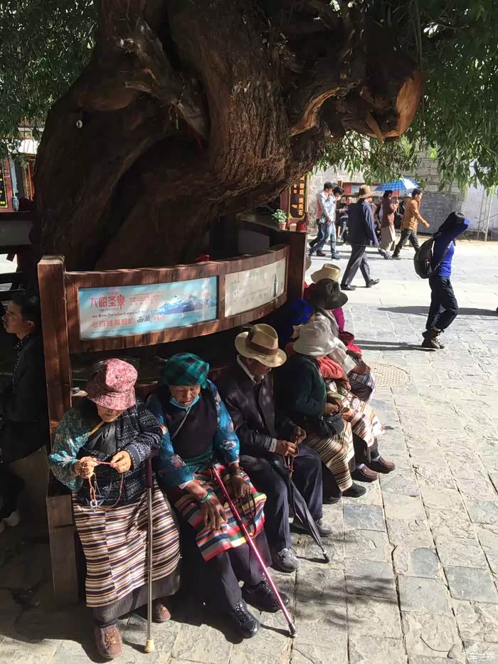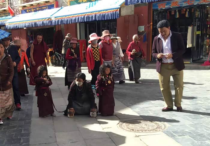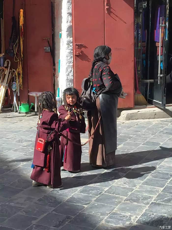 去八廓街的大树底下再吃点牦牛酸奶。街上遇到一位藏族妈妈带着一对儿可爱的双胞胎女儿,一路磕长头参拜往大昭寺门前走,看两个小姑娘的衣着和头发,应该是从很远的地方过来的,但是路上的艰苦掩不住两个小姐妹的可爱和顽皮,她俩边嬉戏边随着磕长头的妈妈慢慢前行,没有任何不耐烦,有人给吃的就互相分享,还相互梳理打了结的头发,微笑的脸上看不出一点对生活的不满,对比我们身边的那些熊孩子们呢?