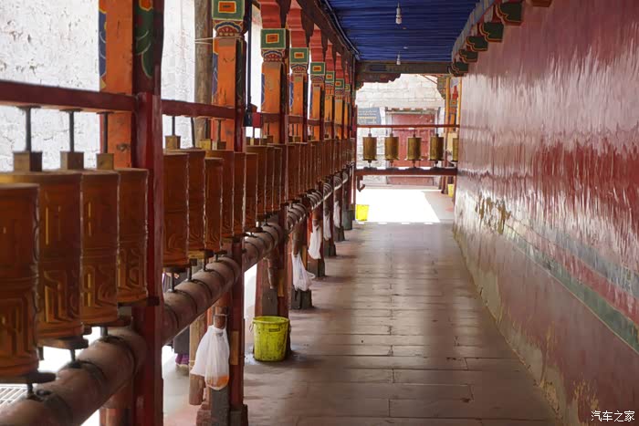 小昭寺通往大殿楼顶的走廊里躺着一只大黑狗,路过的喇嘛说她刚生完狗宝宝,比较虚弱。我们身上没带什么吃的,小妞把包里的牦牛奶片撕开了几片放到她嘴边,她抬头看了看,眼神很温柔,但是没有马上吃,应该是被喇嘛们喂饱了,希望她饿了的时候能吃点,恢复的快一些。