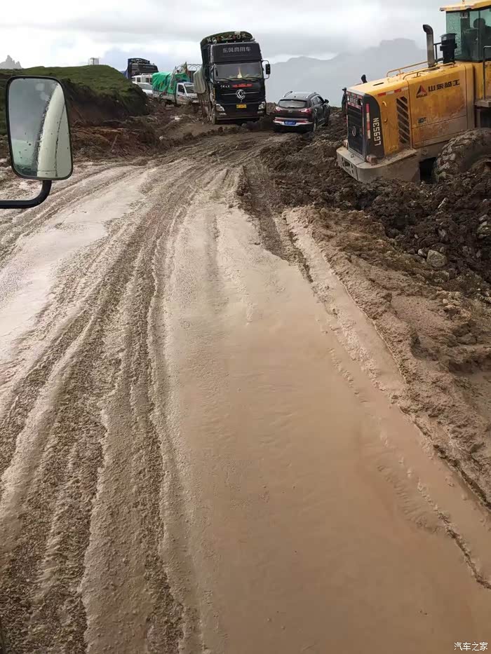 早上忍着酸疼的腿脚爬起来,试着揉了揉左脚腕,居然不那么疼了,小妞的冷敷见效了!貌似没有伤到筋骨,这就可以慢慢走路了。在镇子上找到会说汉语的藏民雇了辆货车,帮我们把大野驴捆到后货箱里拉我们到丁青。巴青到丁青号称130公里烂路,从尺牍镇到丁青的这后60公里果然够烂够险,比昨天跑完的70公里烂路又烂出了一座山的高度。藏族司机长的有点像电影《老无所依》里的主角哈维尔巴登,是镇子上的老司机,靠在尺牍镇到丁青这段路上拉货为生,他说这段路比我们昨天过来的那段路还要烂,如果是下雨天他也不敢跑,泥太厚坑太深。没错,你们看到的照片上如水面一般反光的地方是稀泥坑,坑下面是啥样子你只能碰运气。60公里路,熟悉路的老司机,跑了5个小时才安全抵达丁青,下车看到我的微信步数在车上居然颠出了20000多步,还好是搭了货车,不然驾着大野驴跑这60公里不知要多久才能脱离绵绵泥海。