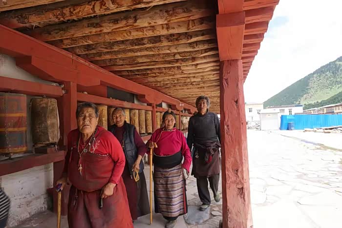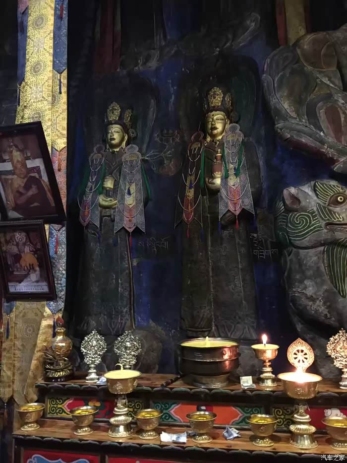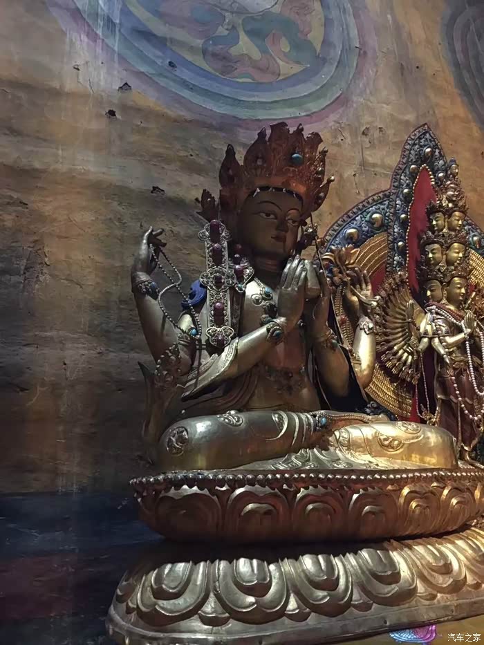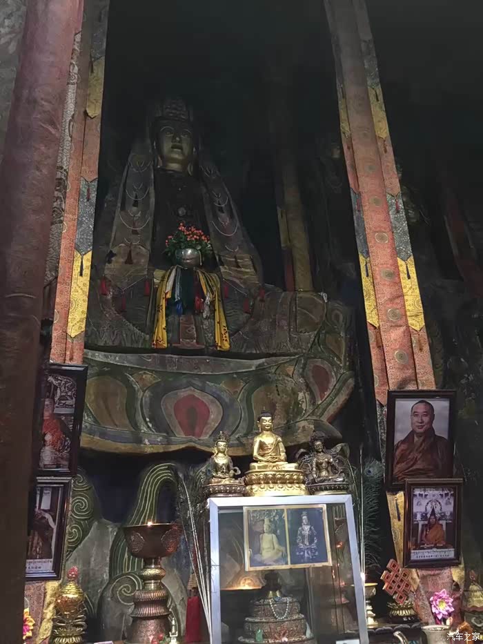 玉树的文成公主庙,在玉树东边25公里的贝纳沟口,依山而建,满山壮观的经幡风马旗,石壁和山下到处都是石刻经文和玛尼石。大殿就是围着在山石壁上开凿的佛像而建的,1300年前雕像的这些石像风格很独特,细看之下有点埃及范儿。这里虽然叫文成公主庙,但其实供奉的是大日如来像,而不是文成公主。据说是文成公主进藏途中受到这里的藏族首领和群众的隆重欢迎,公主感动之余在此率众塑像,后成为寺庙。在寺里偶遇了当地的几位领导,很热情的跟我们聊天拍照,还带我们参观了寺庙后面山壁上的石刻经文,已经风化严重,很难辨识,估计再过一些年就看不到了。