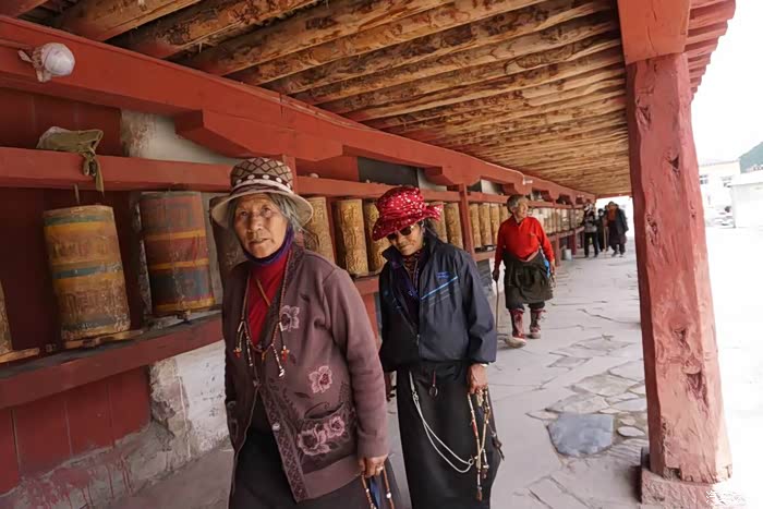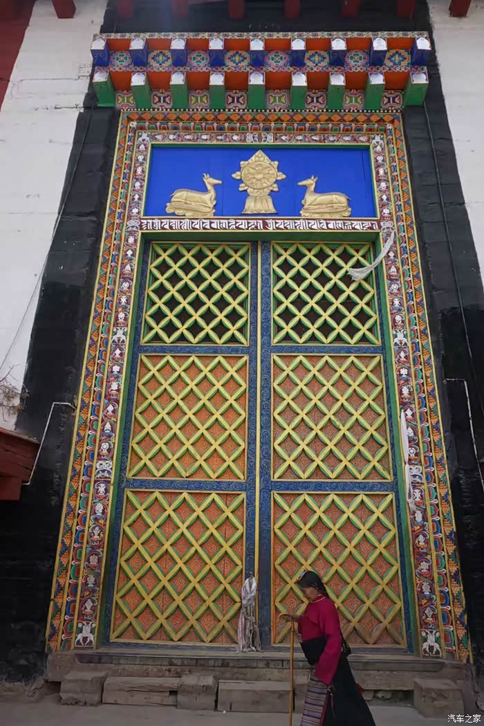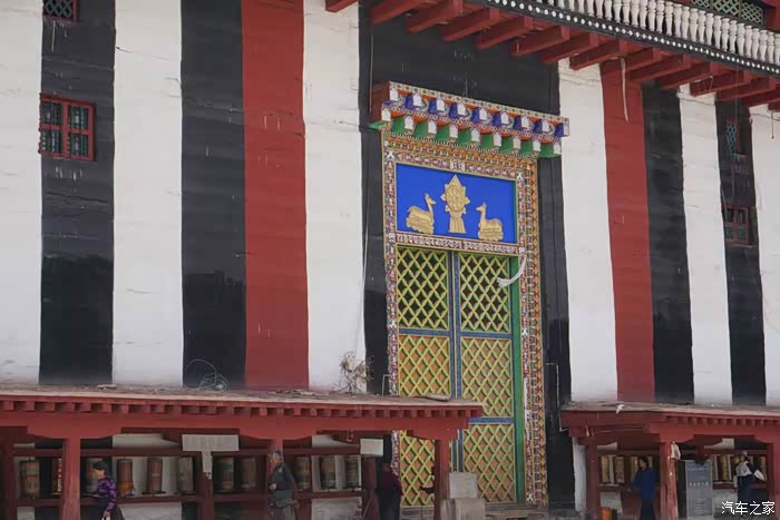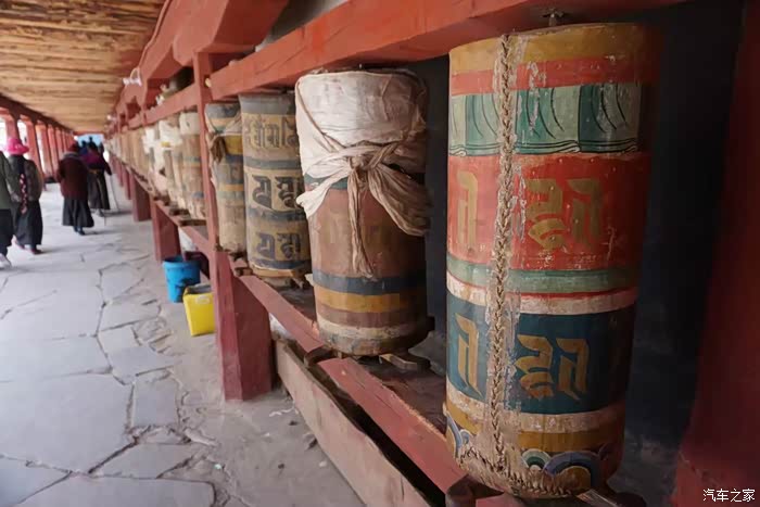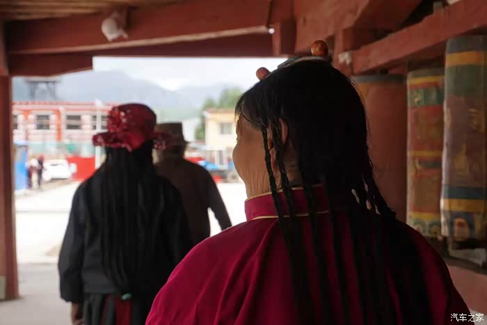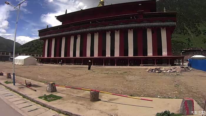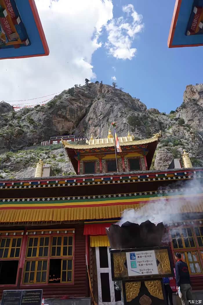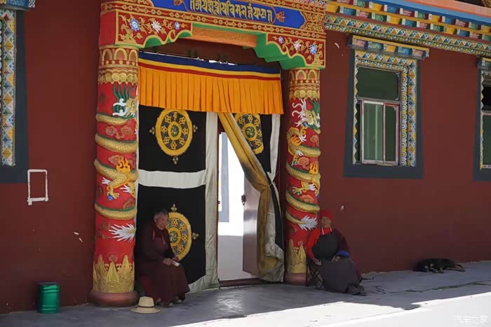 离开类乌齐向北,走不多远有个类乌齐寺,主要建筑就是著名的查杰玛大殿,真的很大,48.5米高,大殿内有元明清历代珍品和珍贵的唐卡、金银汁写绘的经书,非常震撼。看了这么精彩的介绍很是神往,然而~我们在中午赶到大殿的时候,殿外虽然看到了很多转经的藏民,但奇怪的是大殿的殿门紧闭,问了一位会汉语的藏民,告诉我们说:喇嘛们耍坝子去啦!全走了,不开门!。。。。耍坝子就是方言出去玩的意思。。。晕死~~~出县城没多远的河边,果然看到一众红袍喇嘛在帐篷边吃喝玩乐,炊烟袅袅,这修行生活实在是惬意~哈哈