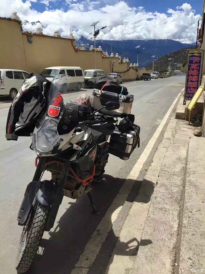 6月18日(六),D26天,飞来寺-德钦-芒康,243公里。 德钦加个油,雨中赴芒康原本计划是一天赶到左贡,无奈徒步的两天太累,昨晚回到宾馆歇下来已经是半夜了,今天中午忍着全身酸疼能爬起来出发已然感觉是奇迹,所以缩短行程改为今天跑到芒康。出发前吃午饭的时候遇到三个同样徒步雨崩从尼农线出山的驴友,个个面如土色拖着身子挪进宾馆大堂,看到他们的惨状,我们觉得看来不是我们体力不好,而是路的确太长太难走,没有对比就没有力量,马上觉得精神头又充足了不少,虽然肌肉还依然在酸疼。一路上在滇藏线部分碰到两次施工限行,等待放行的时候遇到两个一样单骑长途进藏的摩友,还有一个自带活佛进藏祈...