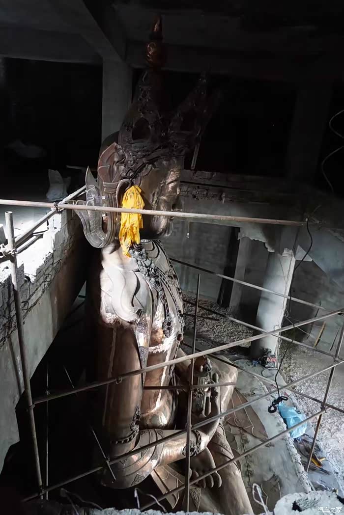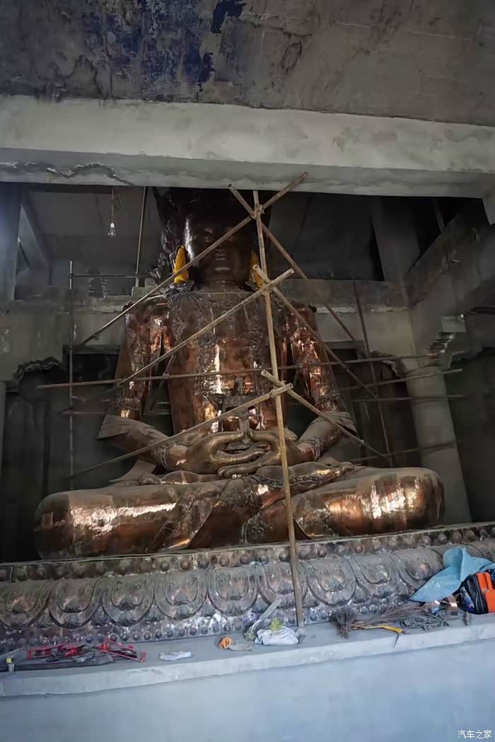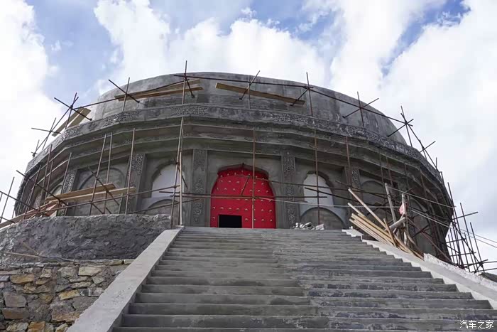 回到县城,一路骑到了结古寺,这里的玉树县城的制高点,震后还在恢复修建中,看不到多少内容,但是看风景很棒,四周都是Windows桌面一般的蓝天白云青山绿影。山顶的庙堂地震时损毁了,现在正在修建一个很雅典的神庙,里面在塑一尊大佛,铜胎已成型。