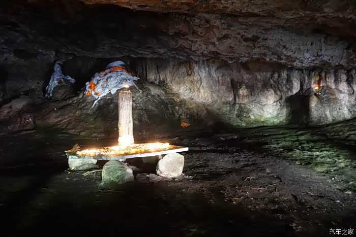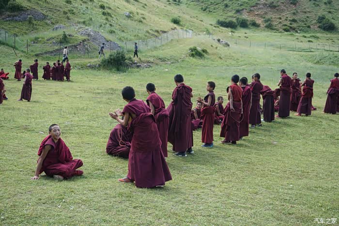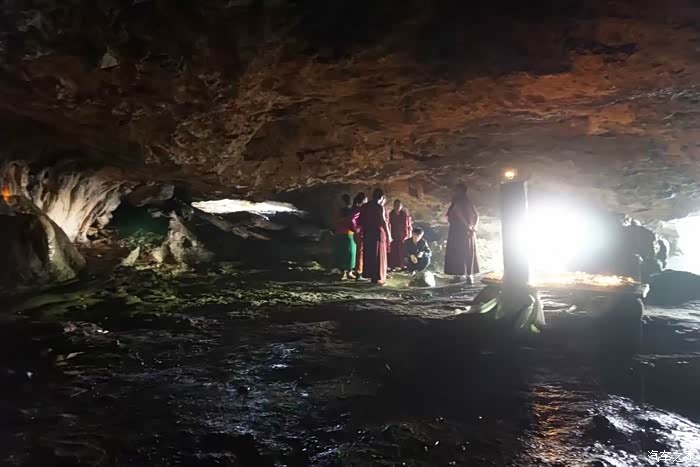 寺后面有一片峡谷,挺秀丽,潺潺溪水绿草青山。在峡谷口遇到一群小喇嘛集合练习辩经,虽然已经出家,但是孩子们天性活泼,说说笑笑打打闹闹,很像在春游。峡谷口不远处有一片滴水洞,入口很低矮,钻进去之后发现洞内挺大,高度可以站人,岩壁有泉水渗出,还有几根钟乳石,这里也被焚香参拜,对虔诚的信徒来说,只要是看起来神奇的地方就值得一拜。