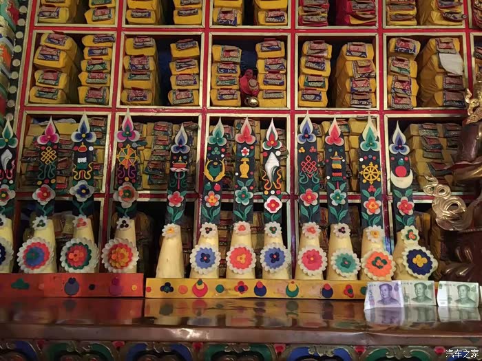 甘丹赛赤寺是修建在山上的,据说后山还有个天葬台。说实话,这里的佛像没有四川的好看,都是大脸盘子,壁画也都是新画的,不好看,但是酥油花很漂亮。
