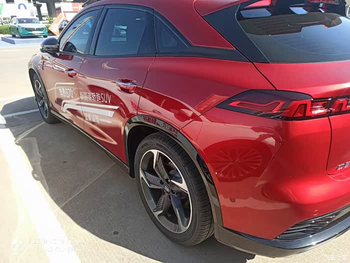 外观方面,新车前脸使用家族式设计,大尺寸前进气格栅中间使用了镂空式的熏黑镀铬装饰件,看起来相当深邃。两侧大灯造型非常特别,尤其是向下延伸的日间行车灯,形成类似直角的形状。下包围为梯形结构,内部同样是使用熏黑装饰进行填充,配合上中网,整个前脸颇显运动化。来到车身侧面,运动调性非常突出,贯穿式腰线从前翼子板一直延伸到后轮,并且带有略微上扬的趋势,形成前低后高的车身姿态。溜背式车身加入也是极为动感,同时结合车顶行李架,看起来多出一些户外元素。轮毂为双色五辐式设计,配合上红色制动卡钳,效果非常吸睛。尺寸上,长宽高分别为4555*1850*1515mm,轴距为2750mm,可以提供不错的车内空间。车尾部分,上方带有镂空式尾翼,略微突出的鸭尾设计更能突显层次感。中间使用贯穿式尾灯设计,夜晚点亮后有着不错的辨识度。下包围带有一块大尺寸扩散器,排气为双边共双出设计,战斗气息相当浓郁。