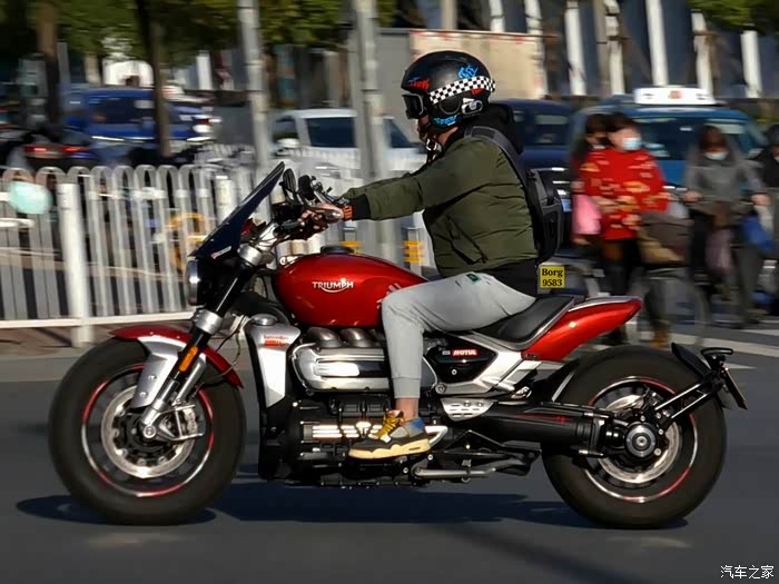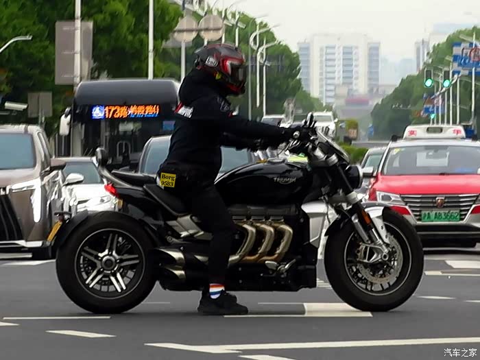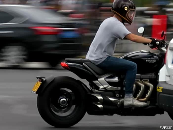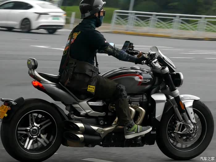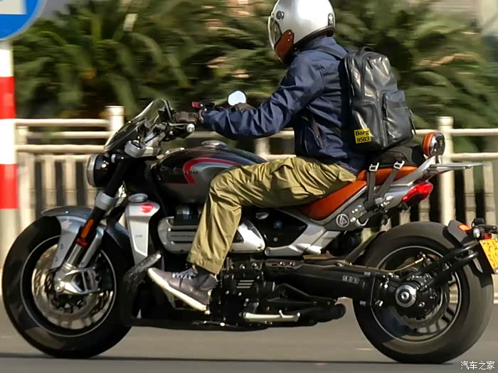 凯旋火箭Rocket3,实际排量达到2458cc,虽然看着像6缸,但实际是大三缸,目前在售最大排量。其实凯旋火箭巡航系列很早就有了,但很多人知道这个车型都是从火箭3开始的。也是不同于哈雷印第安等美式大排量重机巡航的另一种风格。