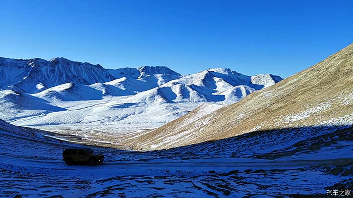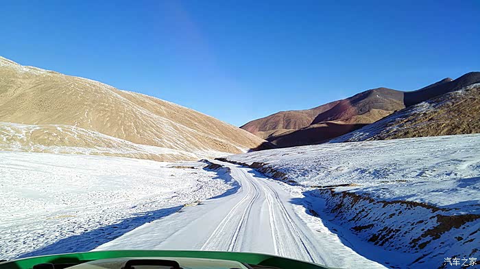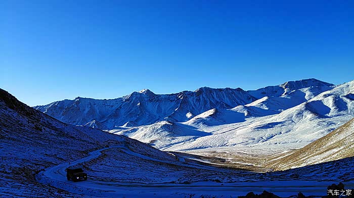 车队的前方,蜿蜒的小路宛若飘落在雪山里的洁白的哈达,柔软曲折的线条美得让人惊叹。