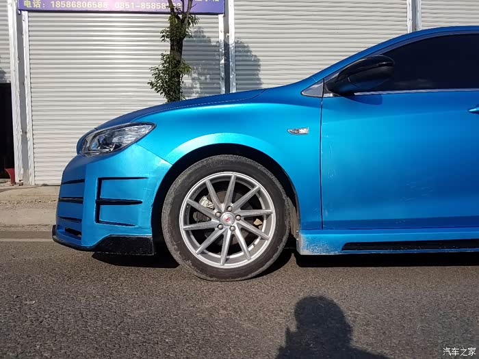 后面就是轮毂咯 换了17寸的轮毂 205 50 R17的佳通轮胎 原来的是15胎油耗增加了0.4个油 但是车的稳定性增强很多最明显的是刹车的时候 制动距离会缩短很多。然后是改色了改色纯属喜欢 只要找到好的贴膜店 选择自己喜欢的就好。