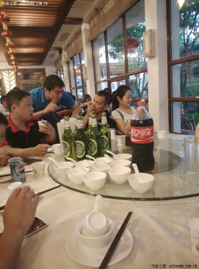 漂流回来,洗澡更衣,晚饭时间,划桨好累,大家放开肚子吃,啤酒可乐伺候。