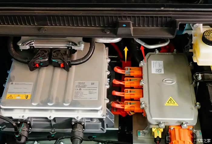 红色箭头:从热本空调压缩机至水冷板控制模块的空调高压管路(将冷量输送至水冷板控制模块)