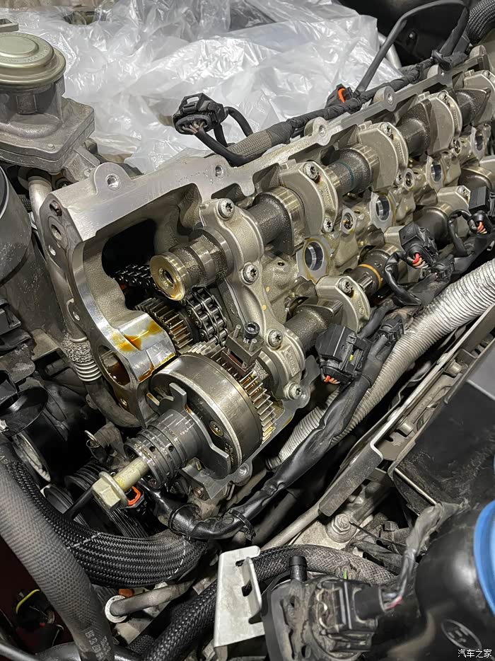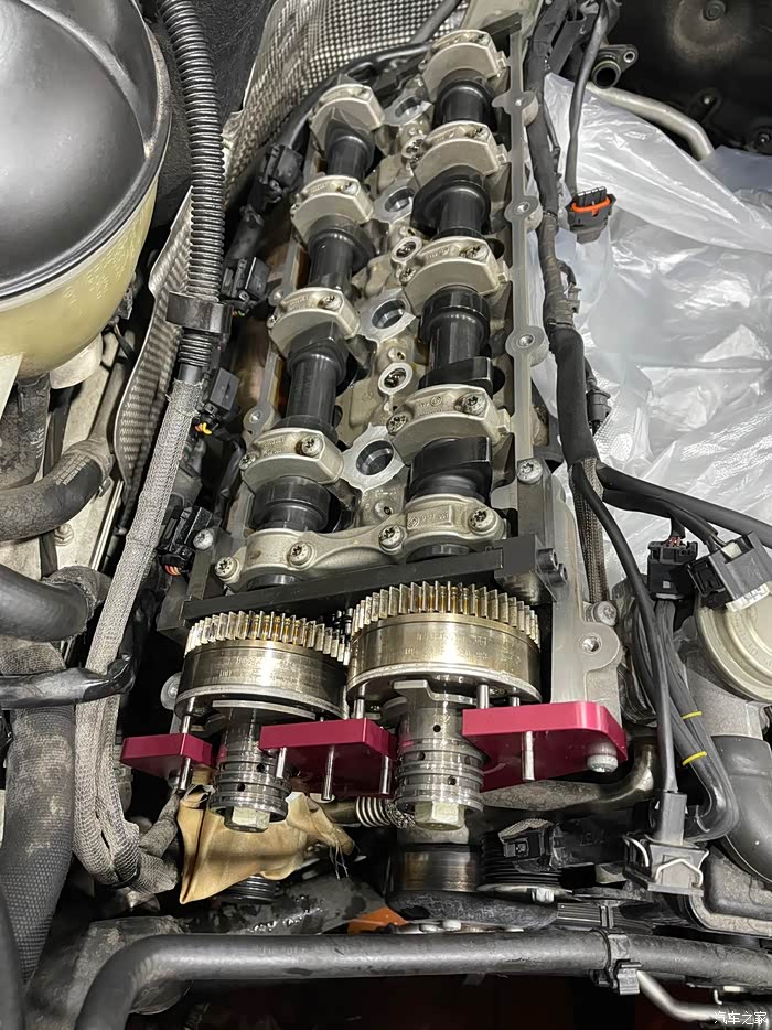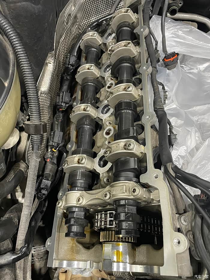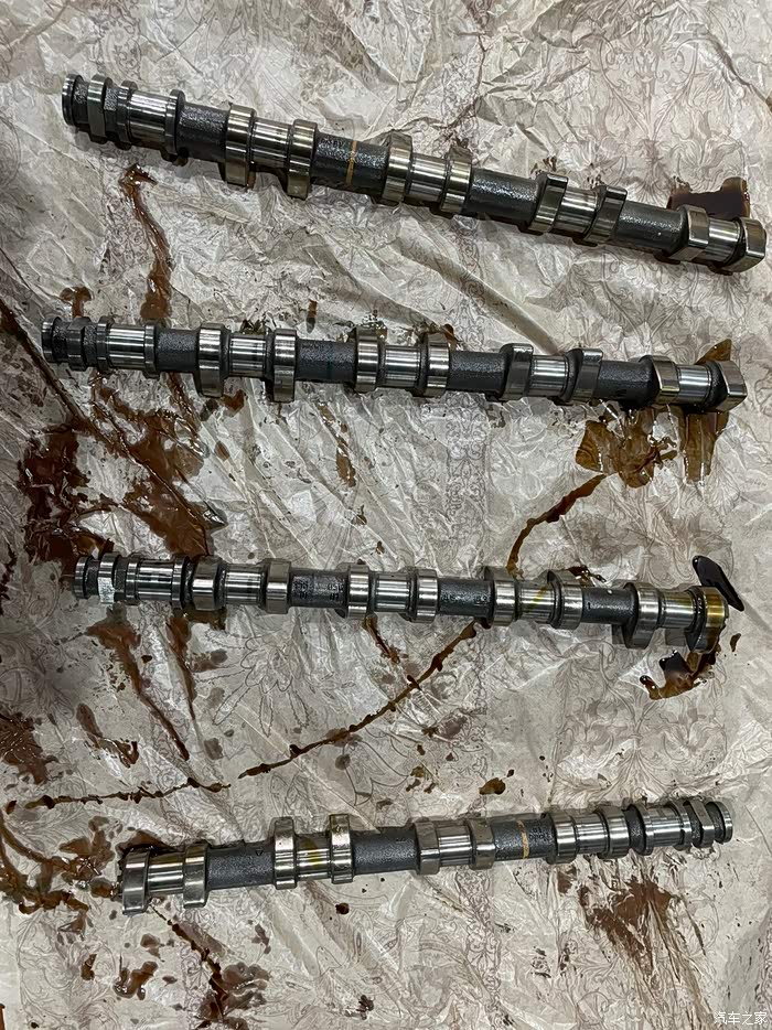 接下来就是m156的通病,凸轮轴和气门顶桶,气门室盖打开看以后发现几乎没有磨损,但是作为想要留在手上开下去的车子,还是打算把这个问题给收拾了,正时链轮经过检查,暂时没有任何问题,所以没有更换和强化(主要是全部强化太贵,钱包在哭泣)