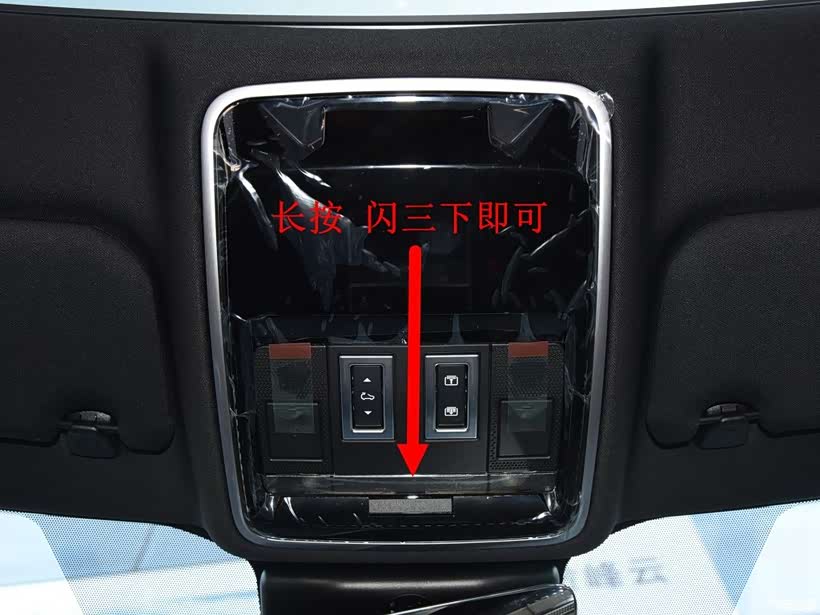 解决答案:在天窗开关前面,阅读灯灯管中间位置触摸按住,闪三下灯光就会恢复,就可以了!