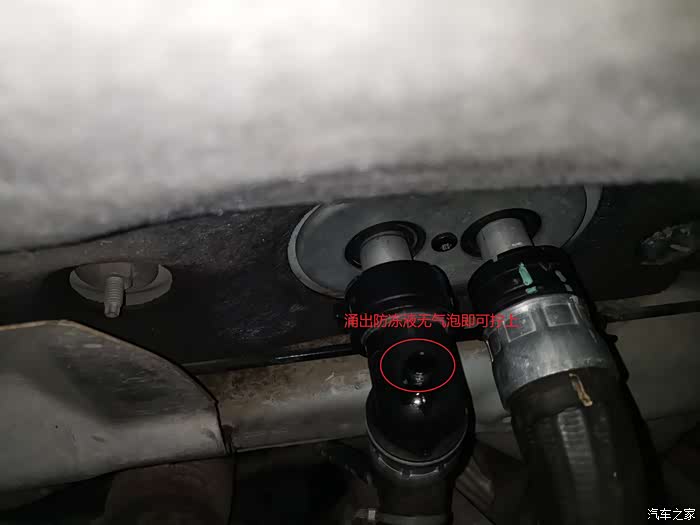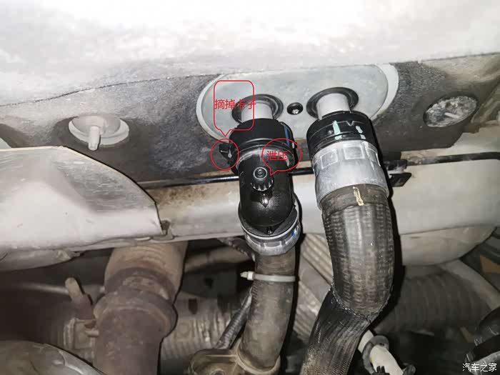 安装完成后记得暖气管排气,标准排气操作当时我也懒得查了,直接打开泄压帽,发动车子,待泄压口冒出防冻液无气泡拧上即可(也不知道对不对,错了请指正)