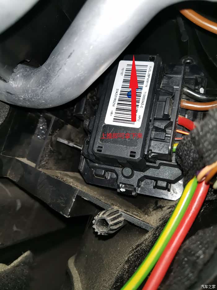 拆掉暖气管卡子,向上拔出暖气管,短的那根可以直接拿掉,长的那根拔出后转动下角度不碍事即可(转动时要注意,不要顶到风道调节的铁连杆,就是旁边连接白色扣的一根铁条,如果装上后风道调节时有咔哒跳响,就是它错位了,需要调节下)