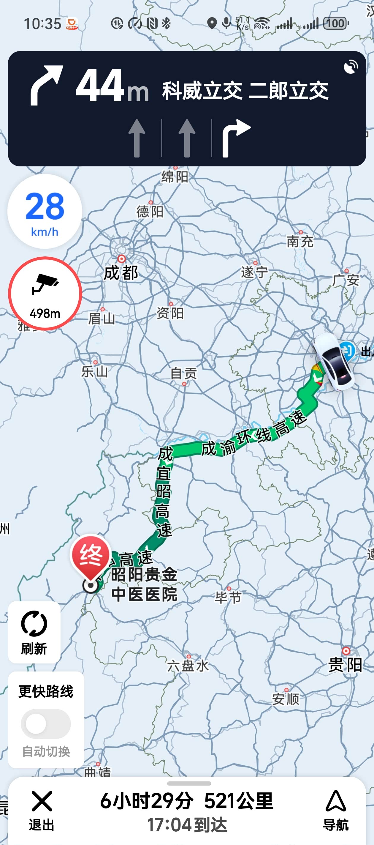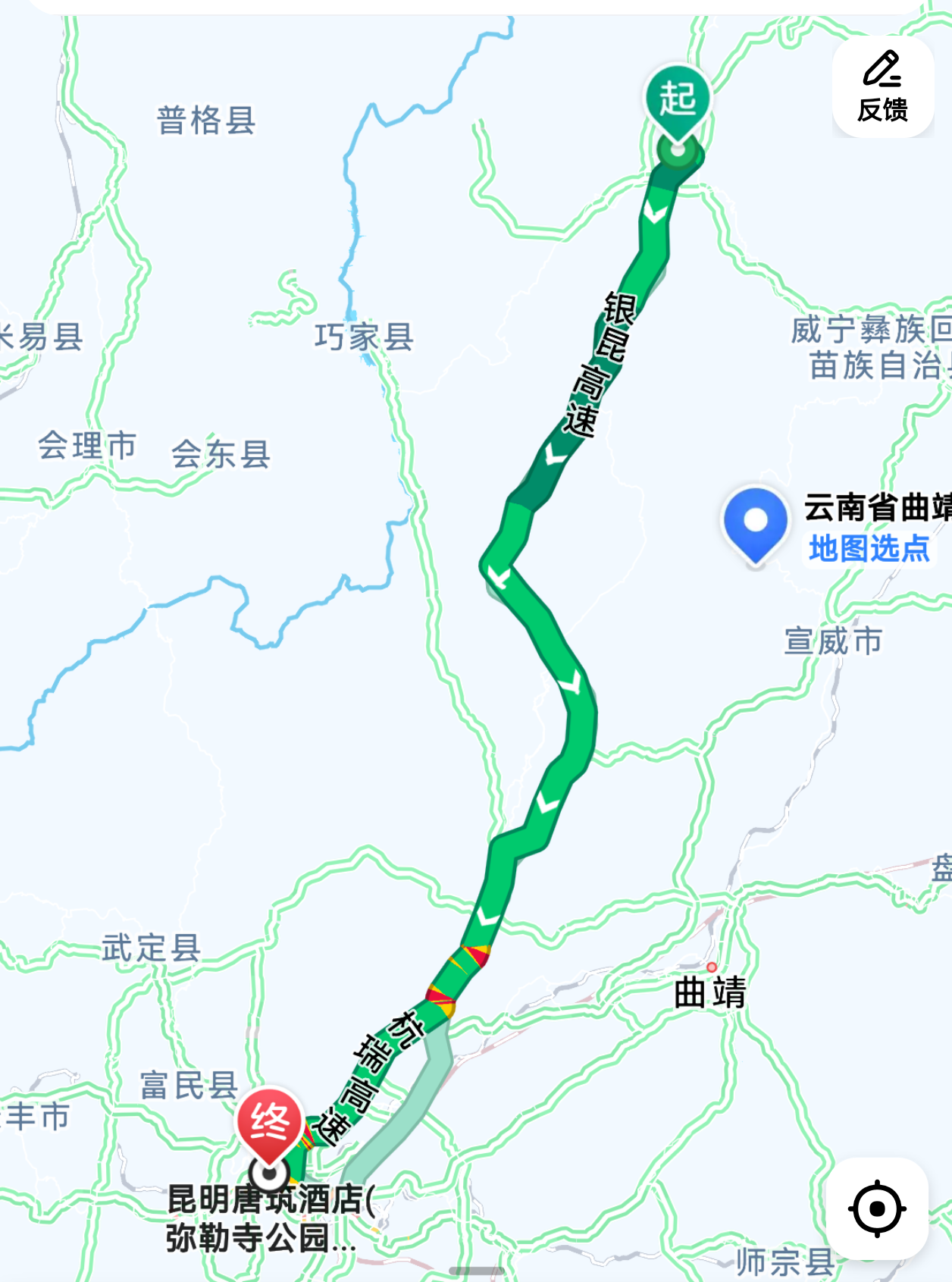 我们走的是坤楚大高速➠银坤高速➠毕威高速➠厦蓉高速➠成渝环线高速。第二天(10月7日)凌晨5点钟才到。