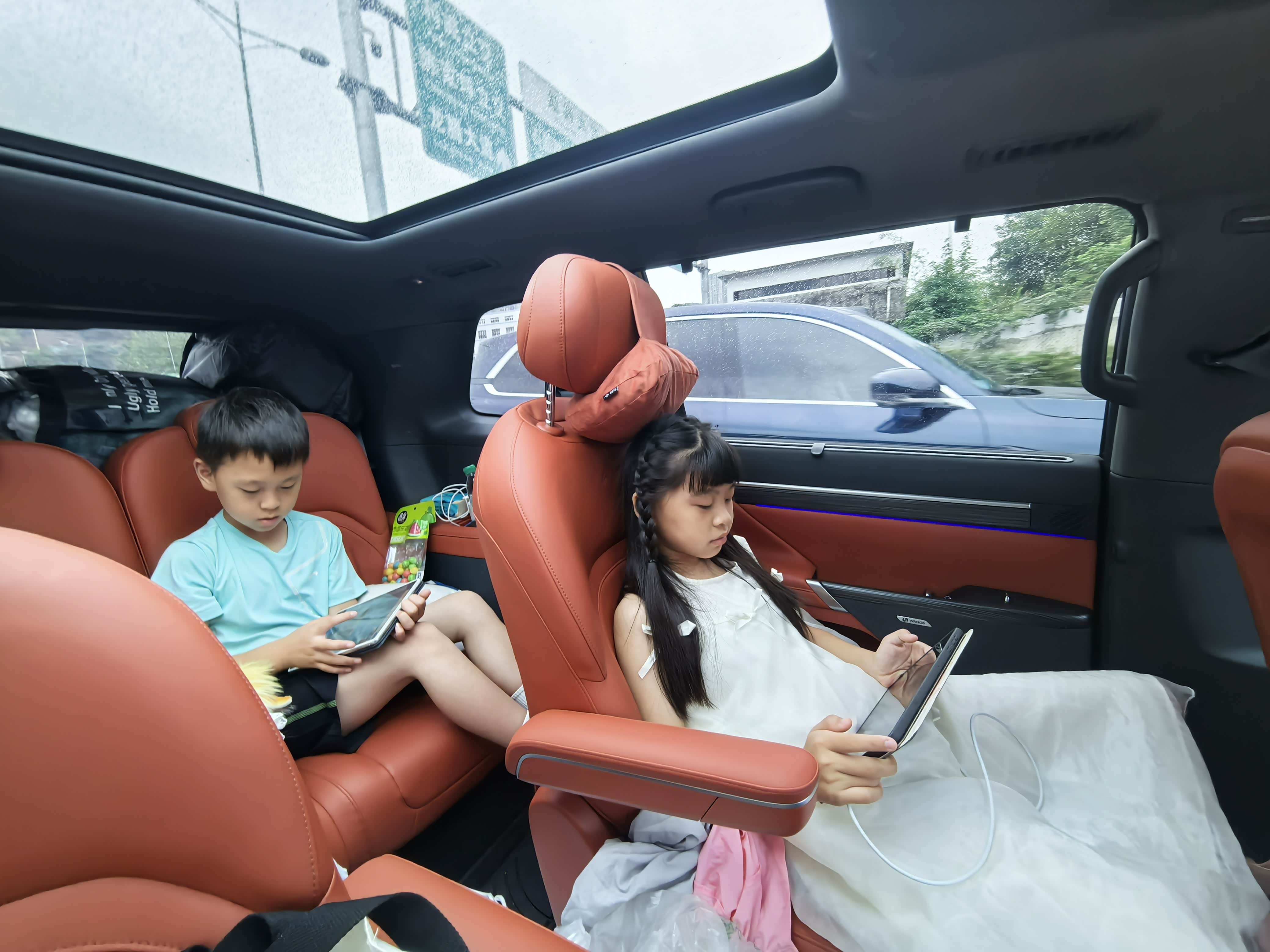 国庆节的第一天,为了避免出行拥堵,我们选择回媳妇老家璧山看看岳父母,一家人一起过个节。另外,老婆的闺蜜听说我们要自驾云南以后,也要带上孩子和我们一起去,幸好去年我们置换了这辆东风奕派008六座增程210Max车型,座椅采用的2+2+2布局,三大三小才都有了比较舒适的布局。真的,家里有两个孩子的家庭,挺推荐选择大六座车型的。