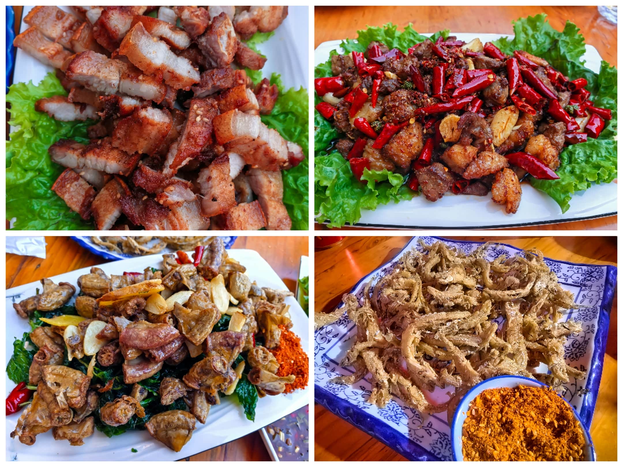 1)首先比较推荐白族风味美食,我们总共吃了两次,到和走的时候各吃一次,没有选择大餐厅而是选择酒店旁边一个小餐馆,生意很好,饭菜也比较好吃。烤五花肉、粉肠、炸小鱼、辣椒炒牛肉、青头菌炒腊肉、青菜芋儿汤……真的很好吃。最后一天中午离开的时候,我们还打包了放在车上冰箱路上吃😊
