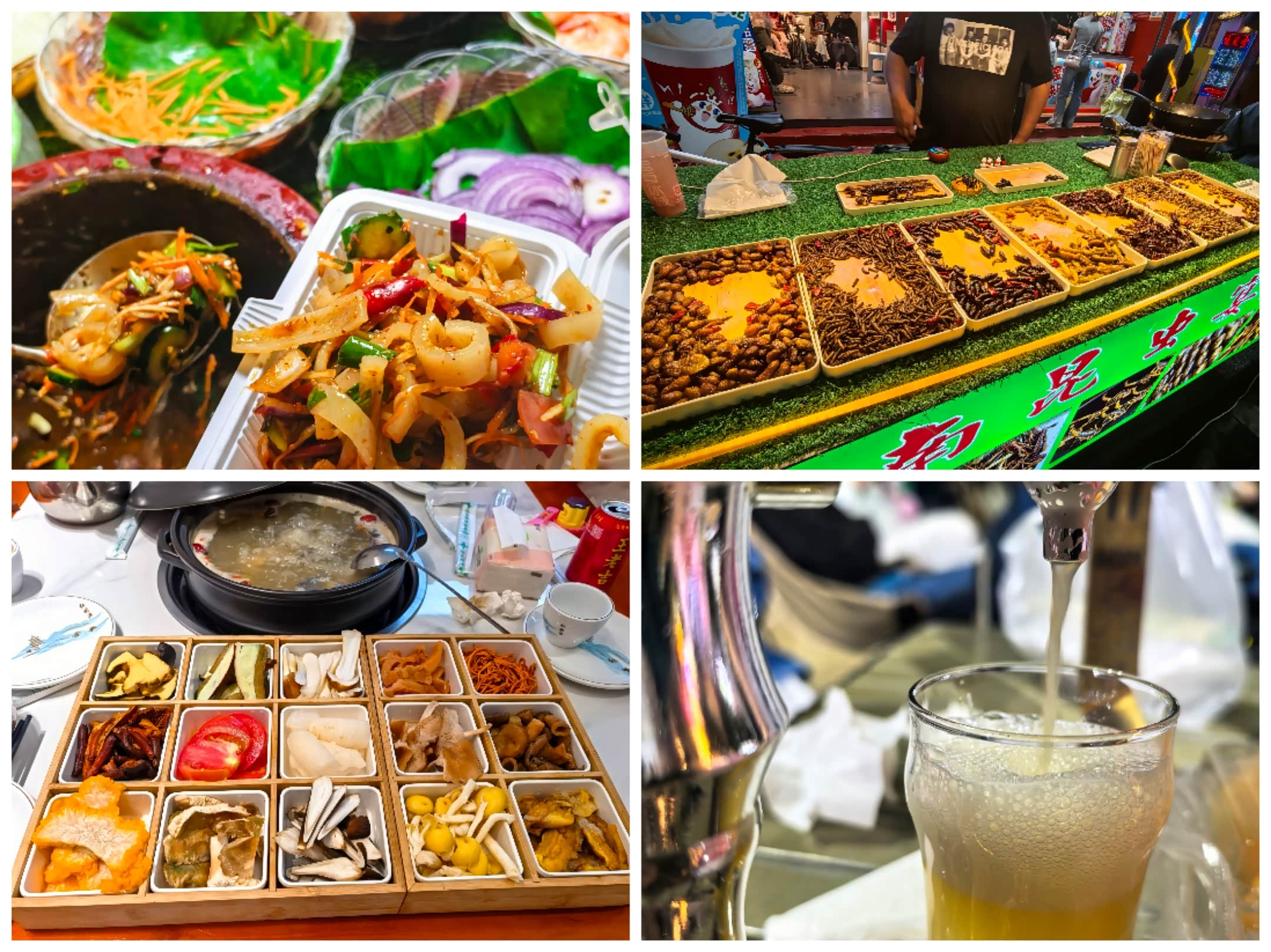 2)小吃:太多种类了,五花八门,数不胜数,逛街的时候喜欢什么就吃什么吧,我太喜欢辣烤鸡腿、椿鸡脚,夜里在奥麦精酿吃烤肉串,喝点小麦啤,吹吹晚风。